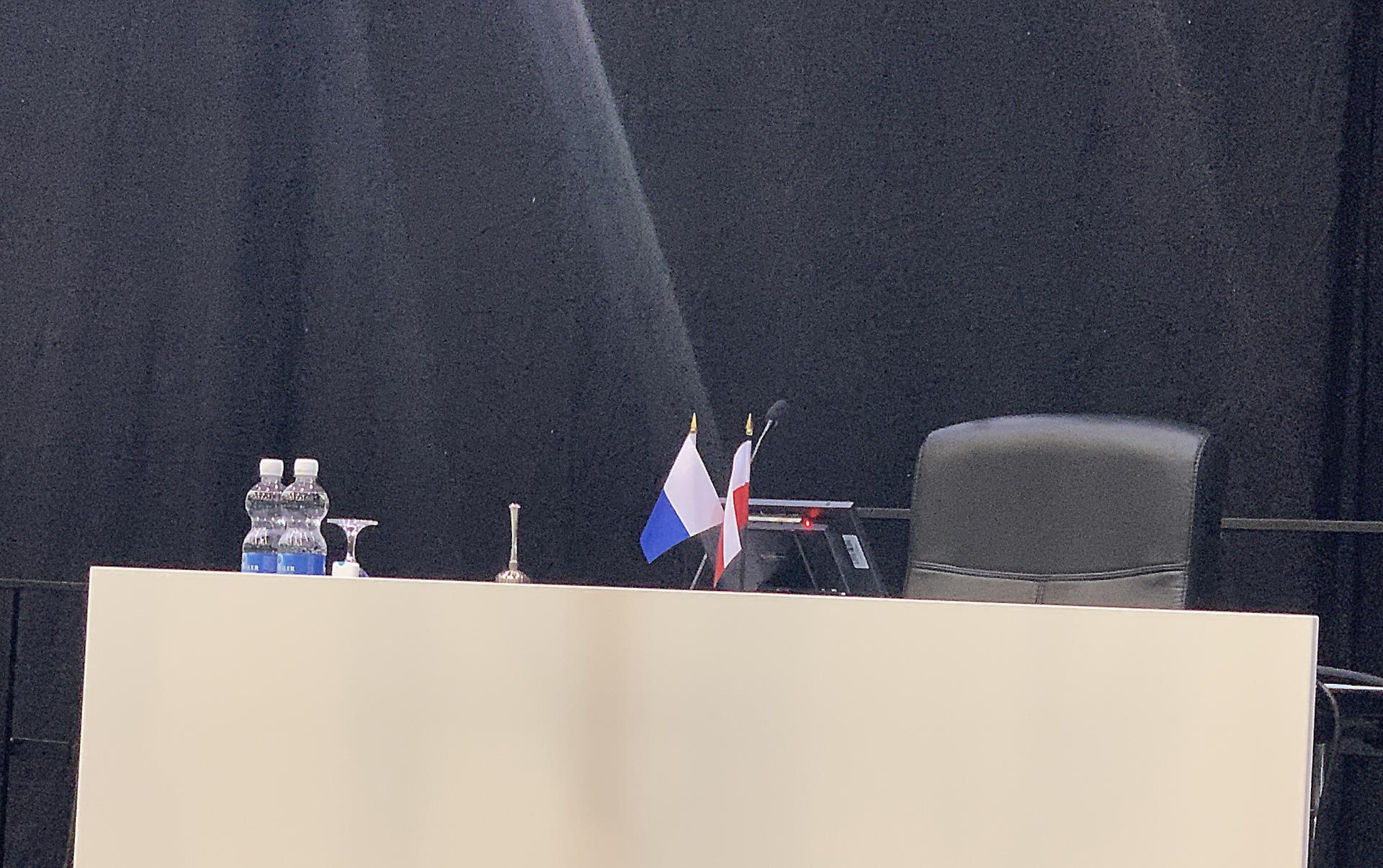 Der Fahrplan für das Mittagessen sieht vor, dass die Kantonsräte eine Stunde Pause haben. Um 12.25 Uhr orientiert Ylfete Fanaj alle, wie sie den Nordsaal erreichen und wie die Tischordnung lautet. Sie schaute auch ihren etwas erhöhten Sitz auf der Bühne an, von dem die Kantonsratspräsidentin einen besseren Überblick hat. Das Surseer Stadtwappen und das Luzerner Kantonswappen sind aufgestellt.