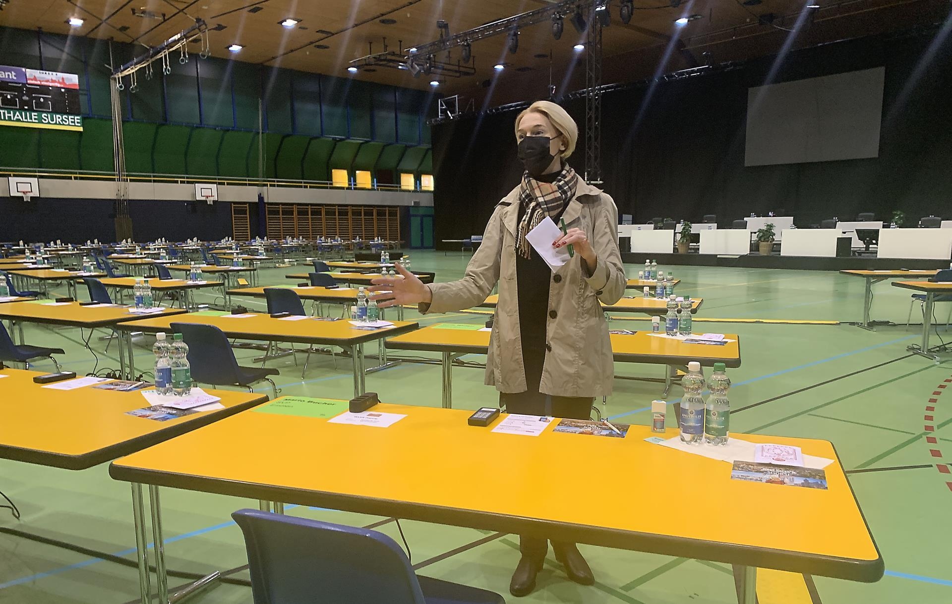 Weil Ylfete Fanaj in Sursee aufgewachsen ist, wird die Session in der Stadthalle etwas ganz Besonderes. «Hier turnte ich früher, hoffentlich werde ich nicht zu emotional», sagte sie «frisch von der Leber». Die eingerichtete Stadthalle lobte sie. «Das sieht super aus und schön farbig.»