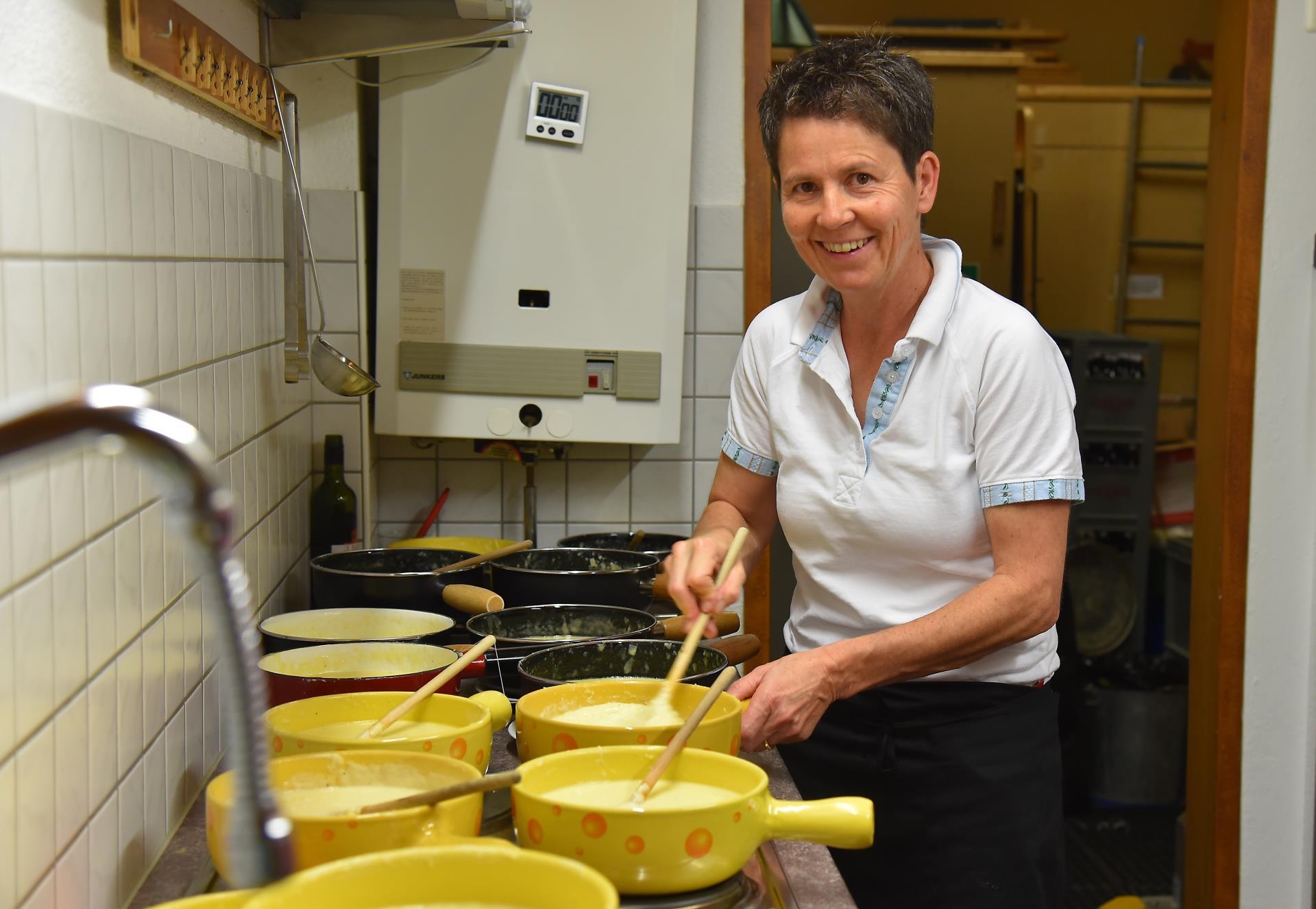 18 Caquelons Fondue bereitete Esther Portmann zu. Bild: Foto Thomas Stillhart