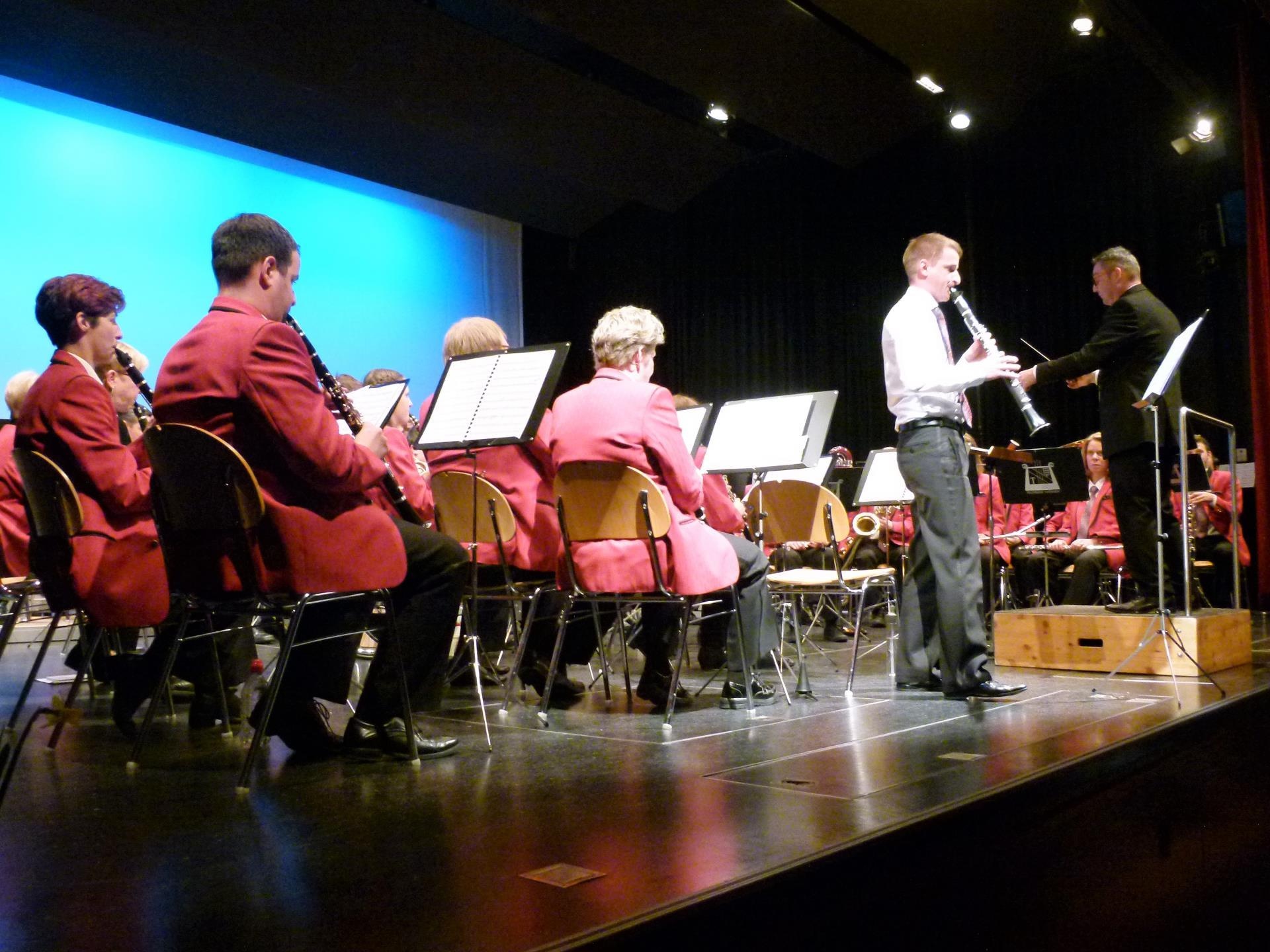 Mit dem Solo von Pirmin Meier im zweiten und dritten Satz des Klarinettenkonzertes von Philipp Sparke folgte ein weiterer Höhepunkt. Der ehemalige Präsident und aktive Ehrenmitglied zeigte, dass er technisch sehr beschlagen, aber gleichzeitig auch äusserst ausdrucksstark ist. Das Publikum spendete zu Recht starken Applaus und forderte eine Zugabe.