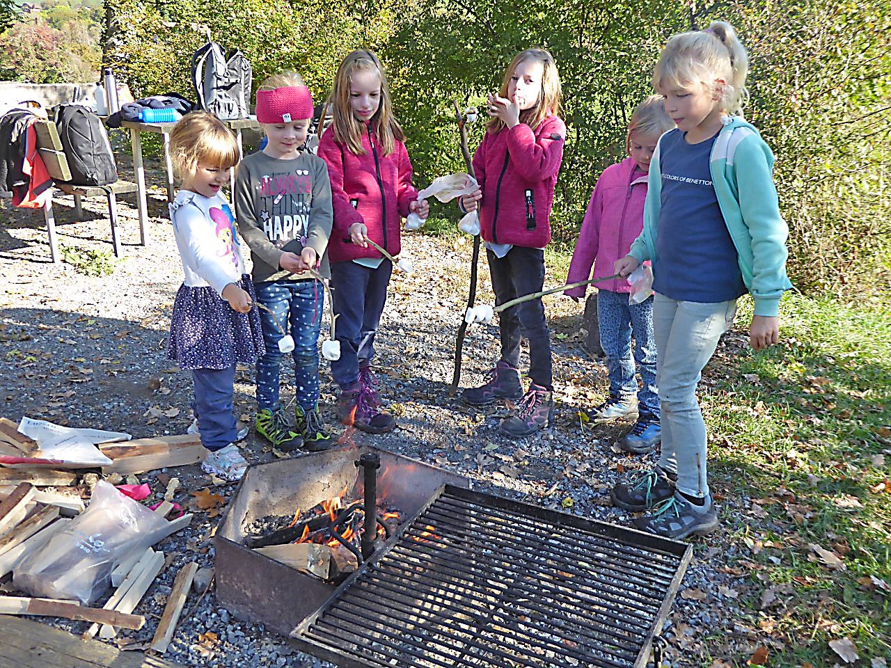 Nach einer kürzeren Wanderung für die kleineren Kinder und einer etwas anspruchsvolleren für die grösseren trafen sich alle beim Weiher in Büron. Im Anschluss an die ersten Fahrten auf der Riesenrutsche und der Sipline wurden die Cervelats, Bratwürste und Brote auf das Feuer gelegt. Am liebsten brätelten die Kinder aber Marshmallows am Feuer. Am Nachmittag blieb genug Zeit, um auf dem grosszügig angelegten Spielplatz Fussball zu spielen oder an den Spielgeräten zu turnen. So kamen alle Kinder ausgetobt und gesund wieder mit dem Bus nach Winikon zurück.