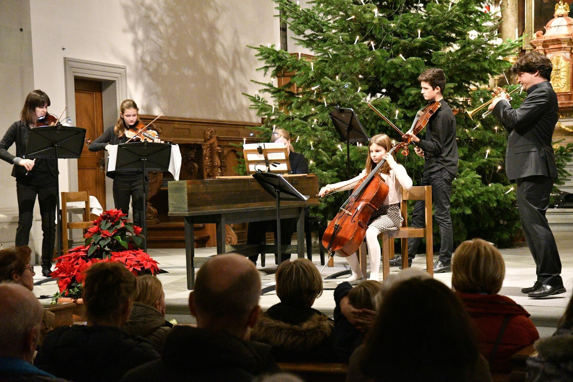 Nach der kurzen Einleitung durch den Gemeindeleiter startete das Konzert mit einem Trompetenstück des britischen Komponisten John Stanley. Der Vater, Immanuel Richter, an der Orgel begleitet von der «Klangraum»-Initiantin Daniela Achermann, überzeugte ab dem ersten Ton. Der Berufsmusiker doziert an der Musikhochschule Luzern am Institut für Klassik und Kirchenmusik. Auch seine Frau Marianne ist Berufsmusikerin und hat ihre Passion für die Violine an Sohn Julian und Tochter Vivienne weitergegeben. Die jüngste Tochter Emilie spielte Cello, und selbst der kleine Benjamin, der Vierte im Bunde, durfte bereits bei Konzerten der Familie am Triangel und Tempelblock mitwirken. An diesem Abend hörte er jedoch von der Kirchenbank zu.