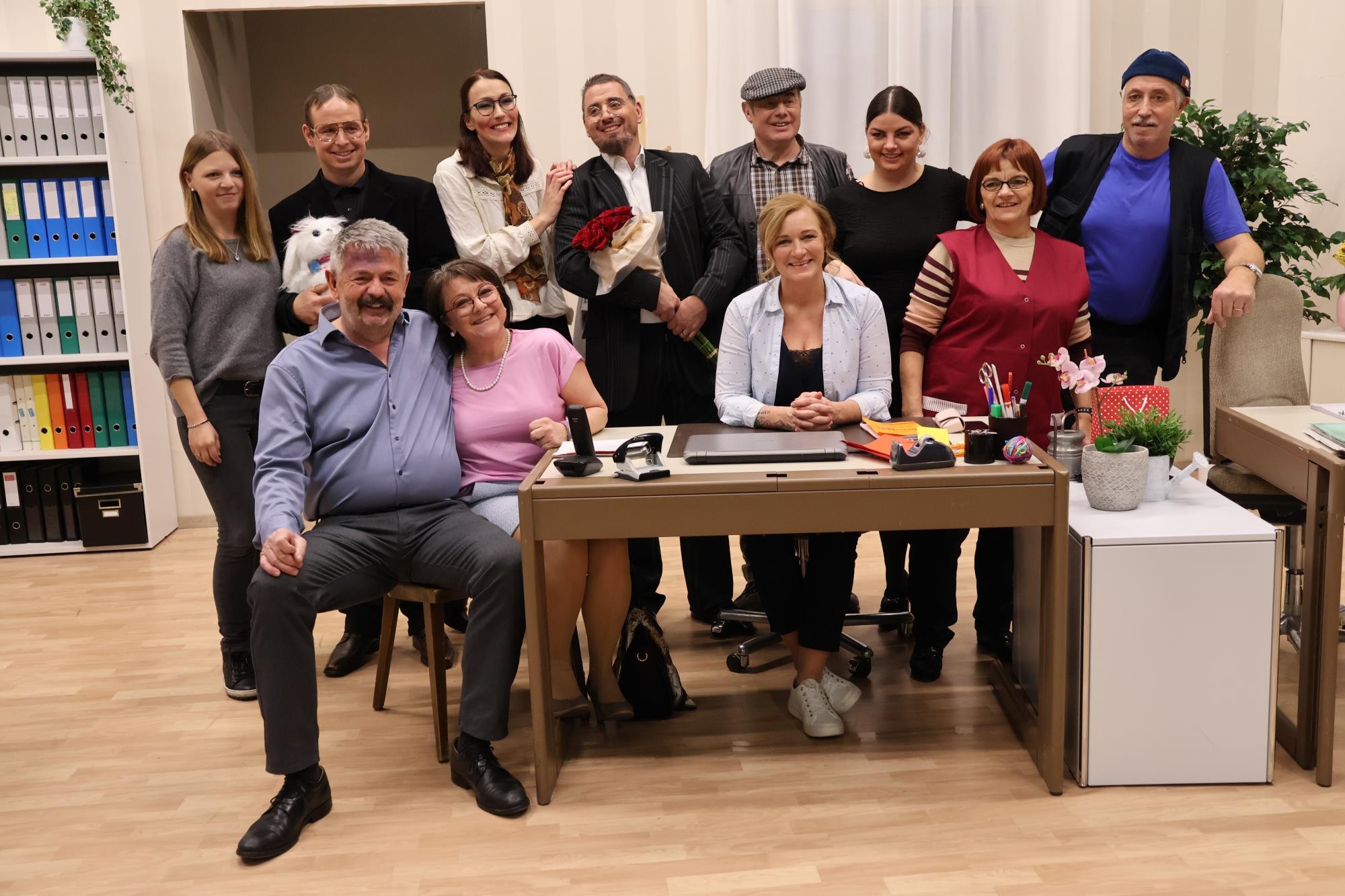 Im starken, geschlossenen Team ragen Geni Burkhard aus Gunzwil als Franz Matter und Andrea Garcia aus Eich als dessen Sekretärin Hanni besonders heraus. Armin Aregger spielt Karl-Heinz von Stetten, Manuela Giger seine dominante Frau Louise, und Regisseur Jöggu Rey spielt Sepp, fast wie ein Spielertrainer. «Ich schaue sehr entspannt und zuversichtlich der Premiere entgegen», sagt Jöggu Rey nach der Hauptprobe. Silvia Schaller gibt Matters Frau Helen, Veronica Giger glänzt als Schwatzbase Emma. Armin Areggers Bruder Patrick spielt Gottlieb, den Psychiatrie-Professor. Doch auch Novizin Petra Albisser als Hermine fügt sich stark ein. Jedes der 60 Mitglieder im Verein ist wichtig für das Gesamterlebnis, auch das Schminkteam, das Festwirtschaftsteam, das Reservationsteam, die Technik/Beleuchtung und viele weitere.
