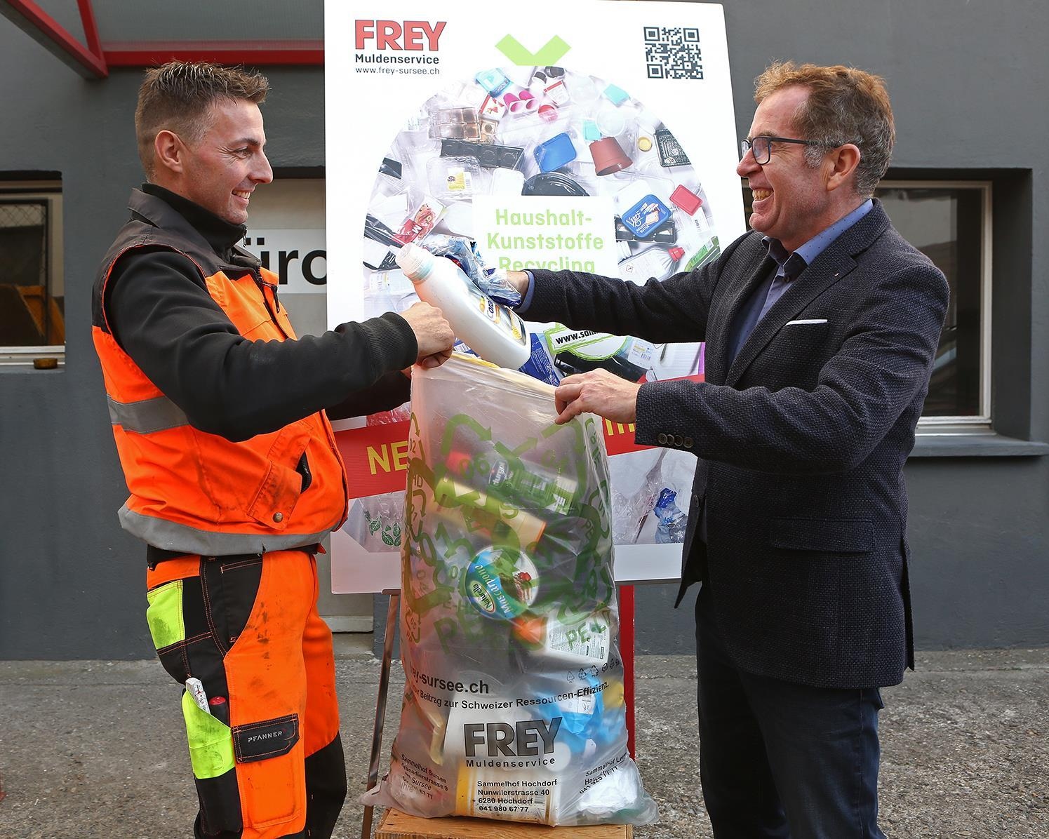 Die Auswirkungen der Klimaerwärmung, die in erster Linie durch (zu) hohen CO2-Ausstoss verursacht wird, werden einem dieses Jahr brutal vor Augen geführt. Und die Verschmutzung der Weltmeere durch Plastikabfälle ist in den Medien derzeit omnipräsent. Da kommt der Inhaber der Surseer Entsorgungsfirma Josef Frey AG, Bruno Frey, mit seiner Idee, für die Wiederverwertung von Haushaltkunststoffen Sammelsäcke zu lancieren, zur rechten Zeit. «Durch die gemischte Kunststoffsammlung aus Haushalten können die Recyclingquote um ein Vielfaches erhöht und der CO2-Ausstoss weiter reduziert werden», ist Frey überzeugt.