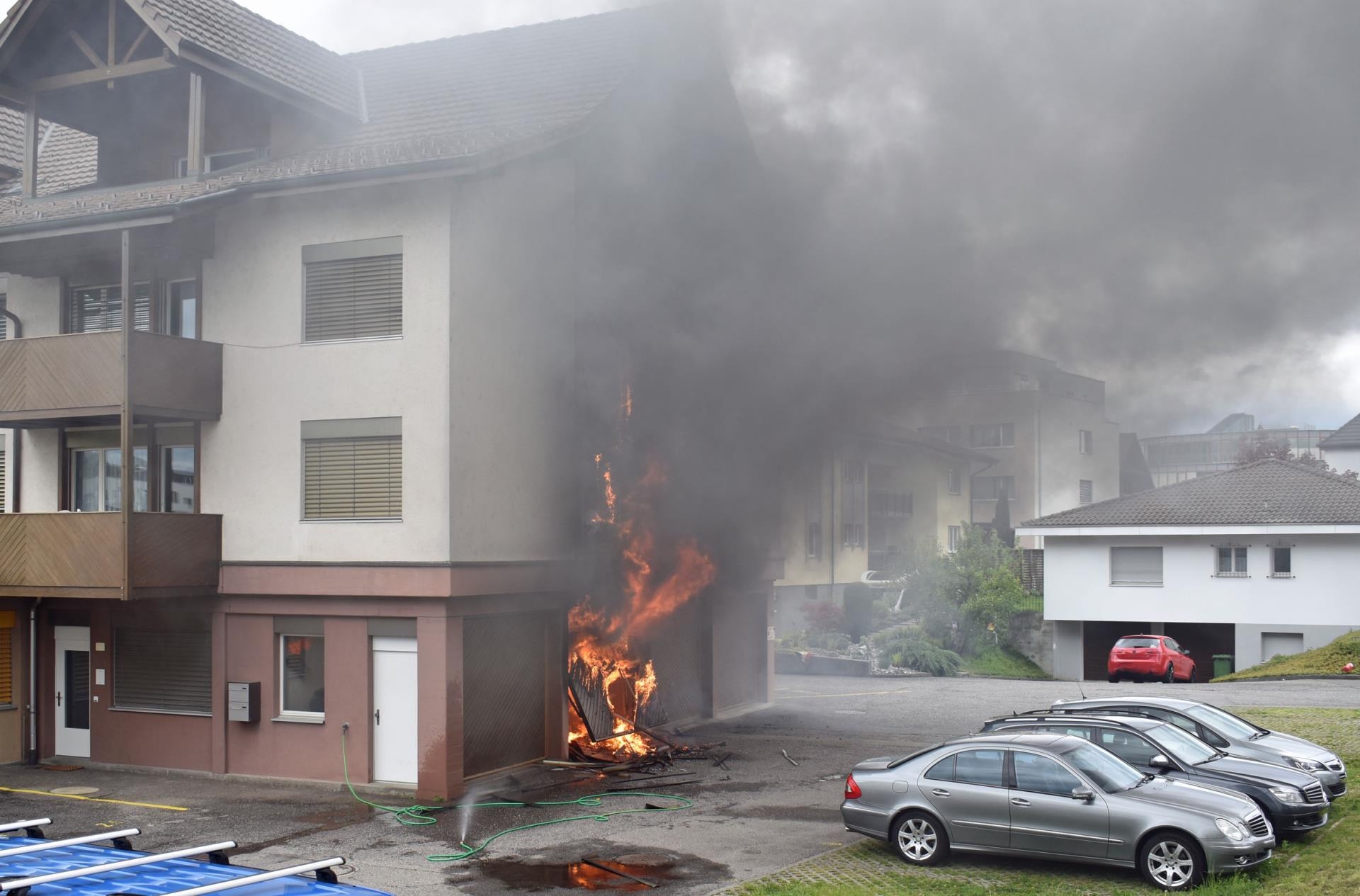Fahrzeug in Garagenbox geriet in Brand – eine Person verletzt