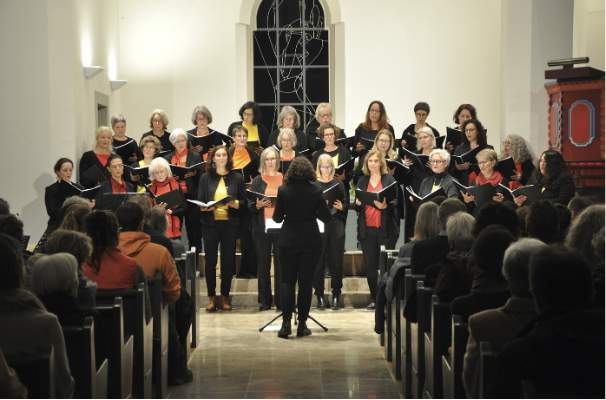Nach einem ruhigen Beginn fand der Chor rasch zu seinem charakteristischen, harmonischen Klang und zeigte sichtbare Freude am gemeinsamen Singen – eine Freude, die sich sofort auf das Publikum übertrug. Mit ruhiger Präsenz führte Marisa Urfer die Sängerinnen sicher durch das anspruchsvolle Programm, selbst bei rhythmisch komplexen Stücken wie Felix Meyers «Lagerfeuer», das mit Body Percussion schwungvoll umgesetzt wurde.