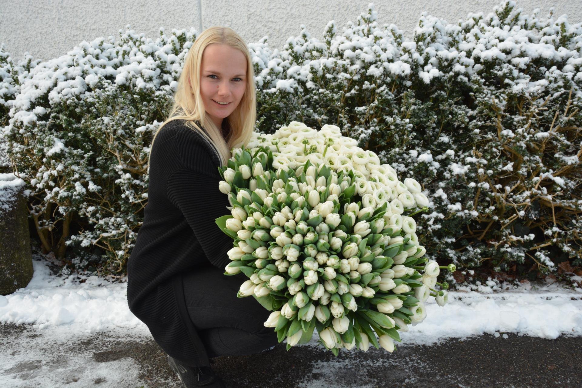 Céline Schaller (im Bild), die bei der Gärtnerei Pflugshaupt in Sursee Geschäftsführerin Blumenladen ist, bereitet derzeit Hunderte von Tulpen und Ranunkeln für das WEF vor. Das Surseer Traditionsunternehmen darf erstmals zwei Häuser in Davos mit Blumen ausstatten. Am nächsten Montag werden die Blumen abgeholt und ins Bündnerland transportiert. Das WEF (World Economic Forum) dauert vom 22. bis 25. Januar.