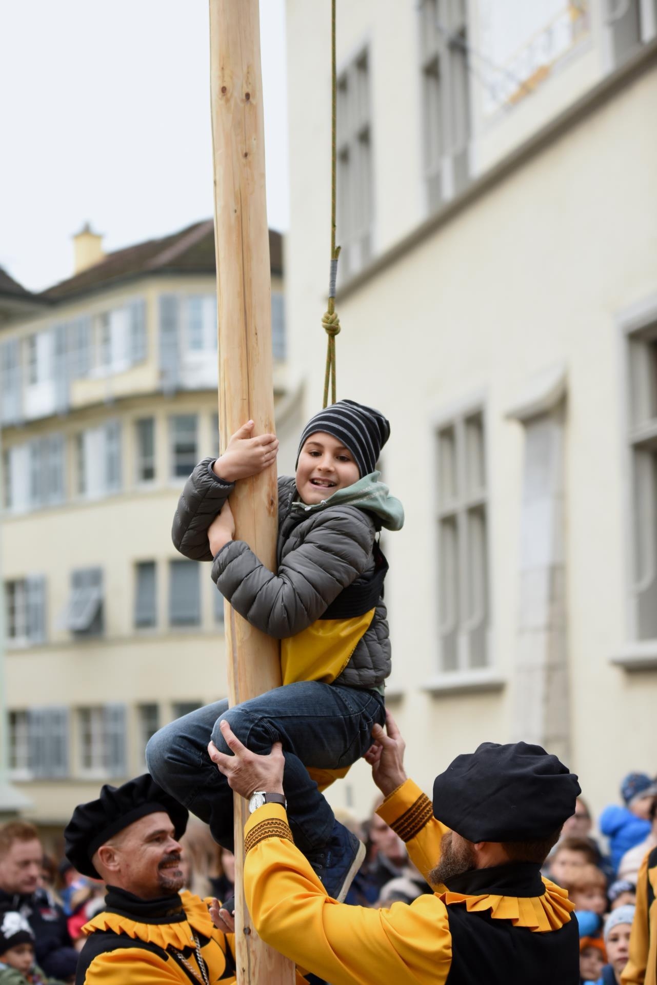 Zwischen den Schlägen und danach erprobten sich die Jüngsten beim «Stangechlättere», beim «Chäszänne» oder beim «Sackgompe». Als Preise lockten keine Gänse, dafür ein Stückchen Käse vom noch amtierenden Heinivater Rico Löhrer, eine Honiggans und ein Cervelat.