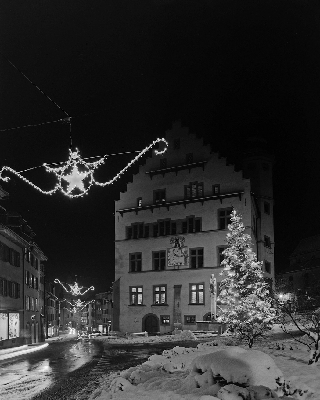 Wer weiss, dass die goldenen, nostalgischen Sterne der Surseer Weihnachtsbeleuchtung vor 60 Jahren noch in der Steinenvorstadt von Basel hingen, auf Initiative von Franz Beck vom Wollenhof und Mitgliedern der Familie Ineichen von der Metzgerei in der Oberstadt für 15’000 Franken gekauft wurden, als Occasion nach Sursee kamen und erstmals vor 56 Jahren die Altstadt der Surenstadt erleuchteten? Und dass diese Sterne seither allen Versuchen, sie durch etwas «Moderneres» zu ersetzen, trotzten? Zwischen 1995 und 2005 wurde die Beleuchtung etappenweise saniert und mittlerweile auch mit Energiesparlampen bestückt. Und wer weiss, wo der erste Weihnachtsbaum im Sursee des 19. Jahrhunderts geschmückt wurde und wann der grosse Weihnachtsbaum vor dem Rathaus erstmals zu bestaunen war? Letzterer wurde von der Korporation 1936 im Rahmen einer Aktion des Gewerbevereins aufgestellt, um der zunehmenden Konkurrenz aus der Stadt Luzern entgegenzuhalten.