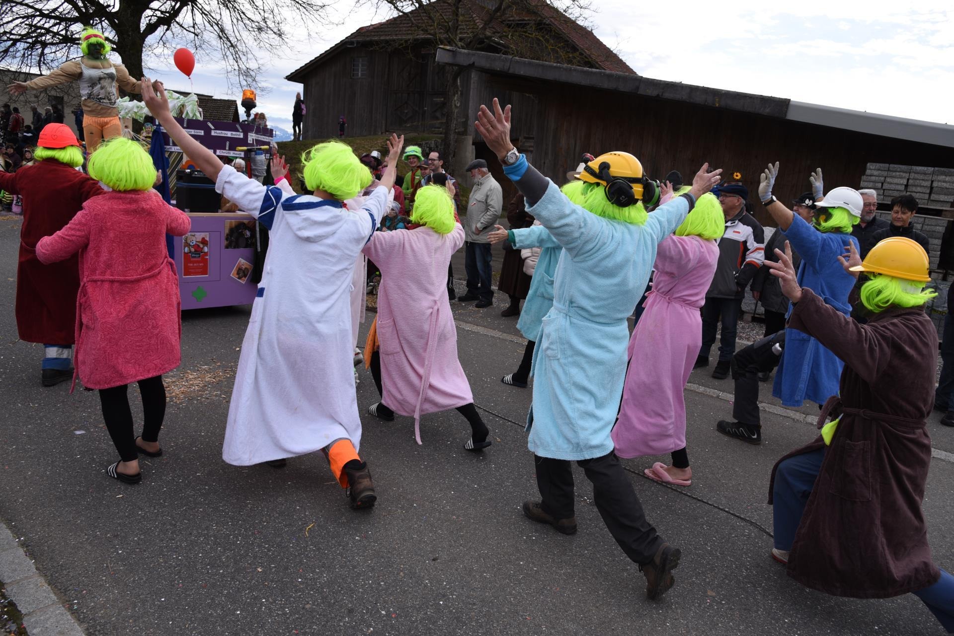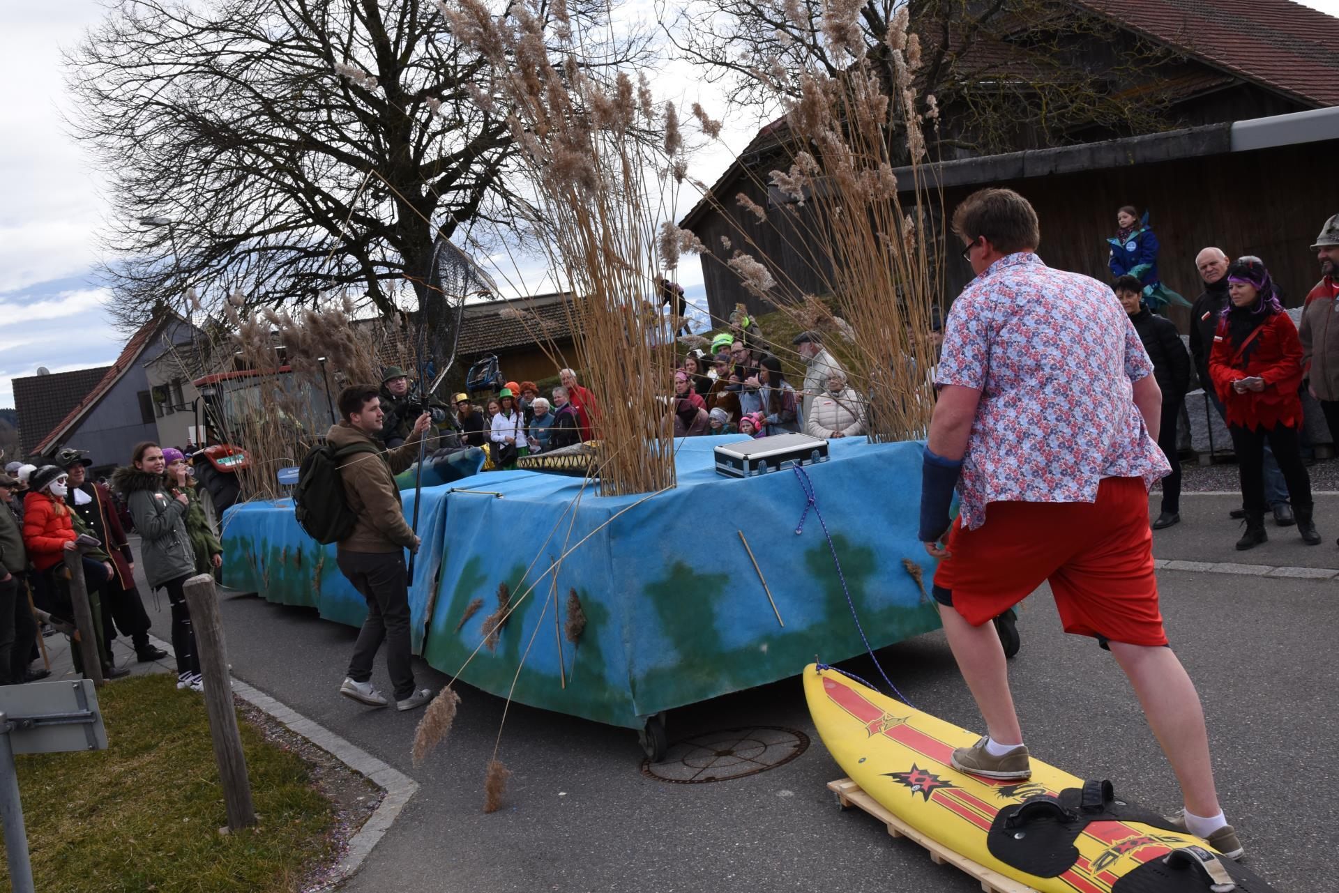 Die rund 700 Teilnehmenden verteilten sich auf 33 offizielle Nummern. Aber auch vereinzelte wilde Nummern ergänzten und bereicherten das Treiben auf den Strassen. Während der böige Wind um die Ohren pfiff und den vielen Zuschauern das Konfetti ins Gesicht trieb, liessen sich die Gruppen köstlich aus über allerhand Wundernswertes und Unpässliches, was übers Jahr für Schlagzeilen gesorgt hatte. In der näheren Umgebung war dies etwa der Kaiman vom Hallwilersee, der im Sommer für tagelange Schlagzeilen sorgte, sich aber partout nirgends zeigen wollte.