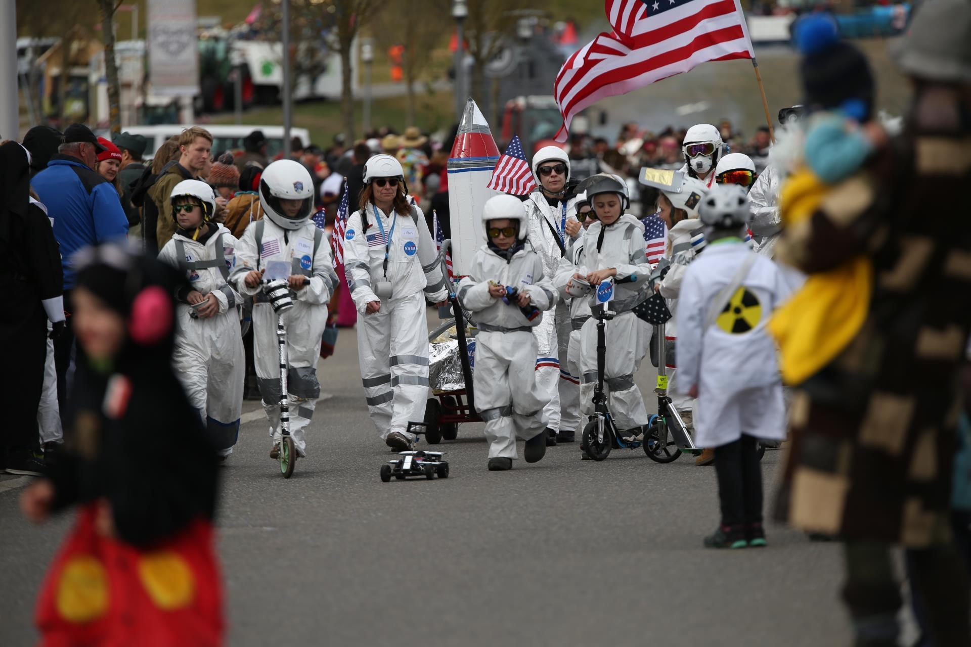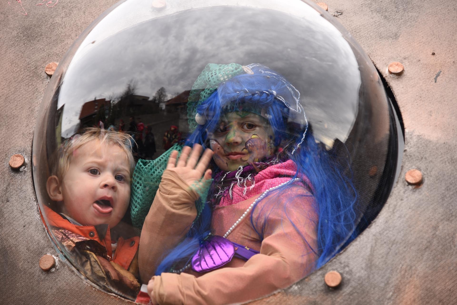 Ein beeindruckender Wurf gelang der Lättöggel-Clique Winikon mit ihrem Motto «Onderwasser mit Nautilus», was die vielen gezückten Handys und Fotokameras beim Vorbeiziehen der Gruppe belegten. Ihre antiken Tauchanzüge und das an ein Seeungeheuer erinnernde Gefährt mit Gucklöckern war ein echter Blickfang an diesem windzerzausten Nachmittag.