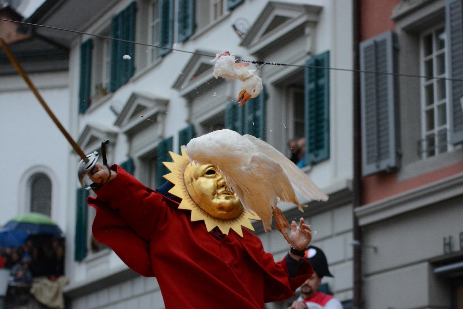 Freilich teilen nicht alle Leute des Stadtpräsidenten Freude am archaischen Spektakel. Obwohl die beiden Gänse bereits tot sind und gemäss offizieller Diktion des Gansabhauet-Komitees auf einem Bauernhof in der Region unmittelbar vor dem Anlass «human geschlachtet» werden, hagelt es jedes Jahr empörte Leserbriefe in den Zeitungen und böse Kommentare in den Social Media. 2001 demonstrierten gar Tierschützer mit Transparenten auf der Kirchentreppe. «Für die Befreiung der Tiere», «Früher geheiligt, heute entwürdigt» und «Haut ab!» war da etwa zu lesen. «Was hier vor sich geht, ist eine Entwürdigung der Gans, die früher als heiliges Tier galt, zum Zweck der Volksbelustigung», machte die Vertreterin von Animal Peace gegenüber der «Surseer Woche» geltend. In Form eines «perversen Fests» äussere sich Respektlosigkeit Tieren gegenüber. Auf Flugblättern forderten die Aktivisten, dass die Gans künftig «aus dem Spiel genommen» werde.