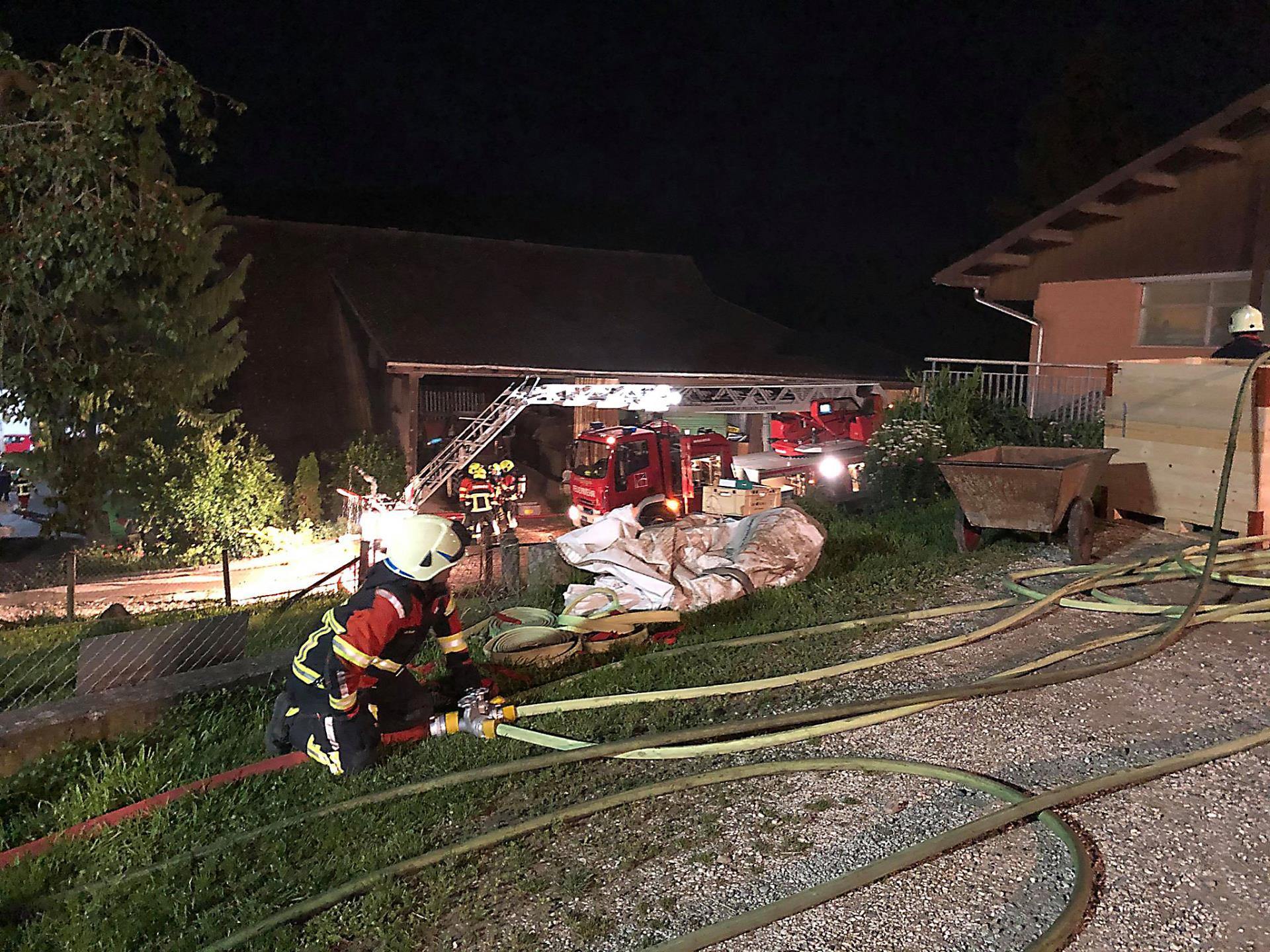 Die Bedingungen mitten in der Nacht beim abgelegenen Bauernhof waren schwierig. So musste die Feuerwehr eine 1600 Meter lange Wasserleitung legen. Kurz nach 8 Uhr endete der Einsatz. Den