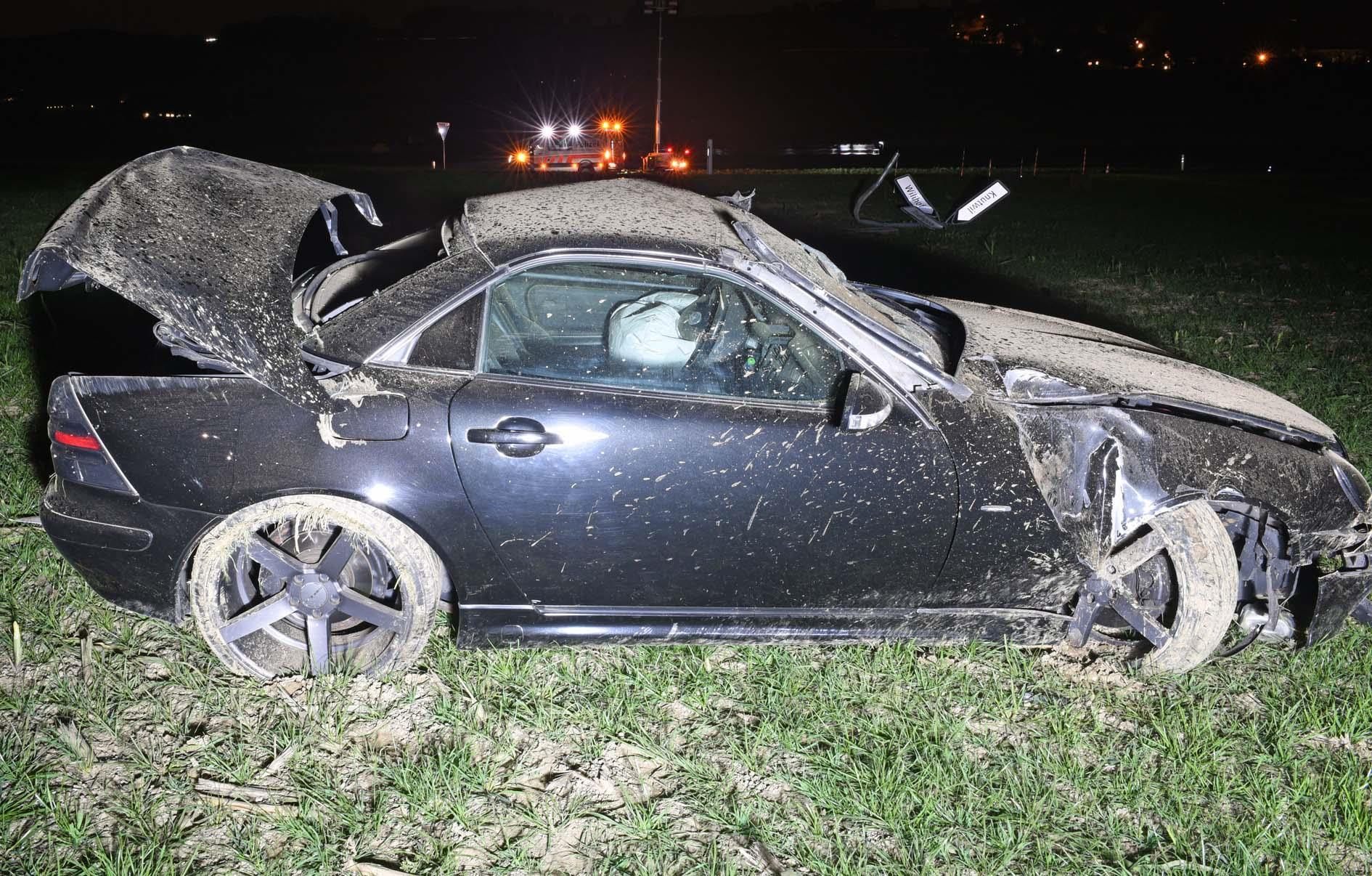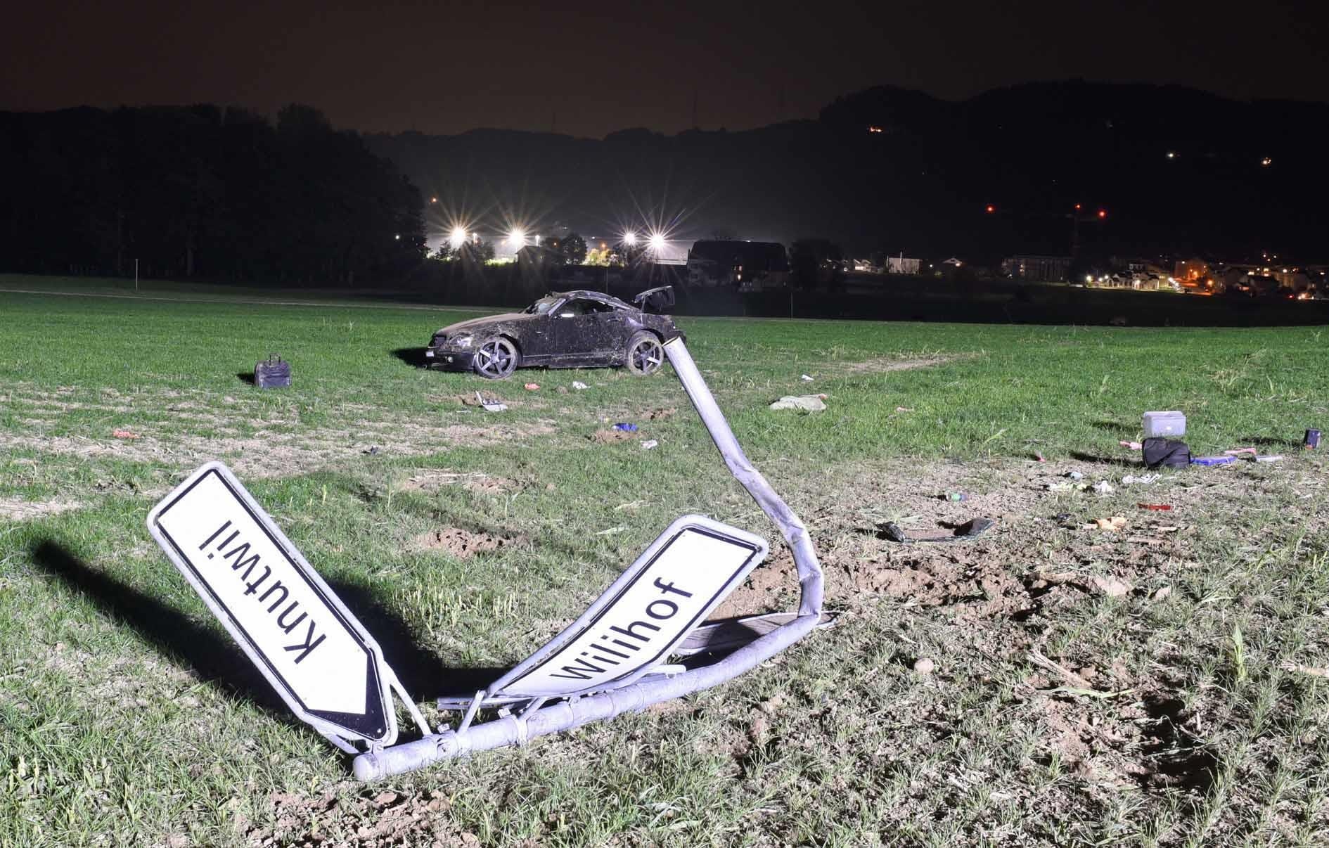 Danach kollidierte der Personenwagen mit einem Wegweiser und überschlug sich mehrfach ins Wiesland. Der Lenker verletzte sich leicht und musste mit einer Ambulanz in ein Spital gebracht werden. Es entstand Sachschaden in der Höhe von rund 12‘000 Franken. Bis die Unfallstelle geräumt war, musste der Verkehr örtlich umgeleitet werden.