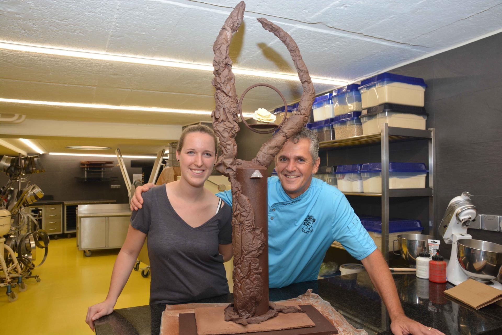 Am Donnerstag startet der Wettkampftag für Janine Habermacher um 8.30 Uhr. Neben des Schaustücks darf sie weiter ihr Können zeigen. "Zwei Torten, zwölf Tartletts und zwei verschiedene Pralinés machen wir vor Ort." Sie habe sehr viel geübt, seit der Bekanntgabe am 12. Juli, dass sie nach Bern reisen darf. Ideen ausprobieren, verbessern, dokumentieren.