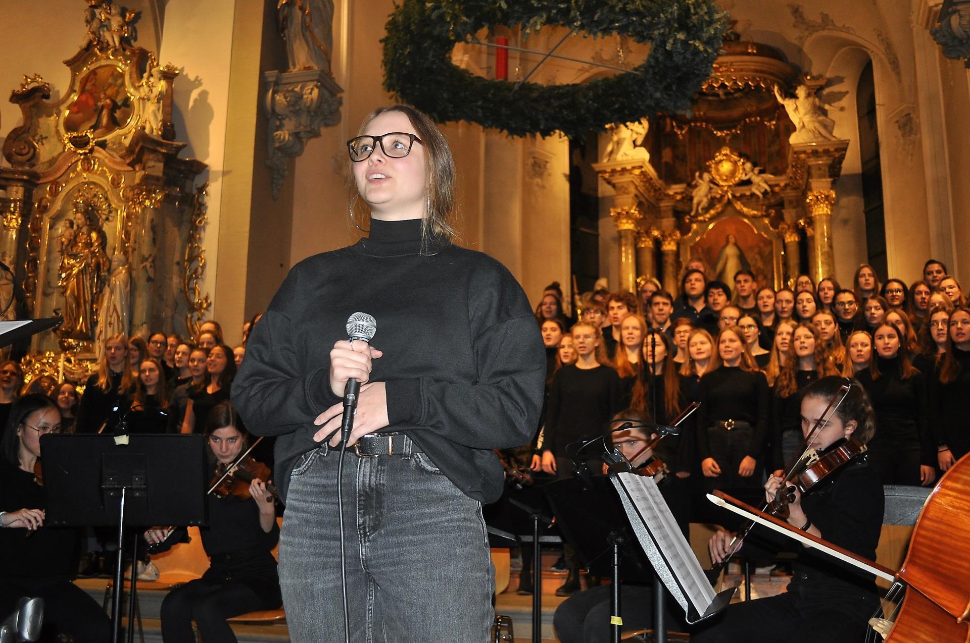 Ein Kontrastprogramm des Kammerchors folgte, augenzwinkernd Alt und Neu verbindend. Zuerst widmeten sich die Sängerinnen und Sänger der traditionellen Weise «Es ist ein Ros’ entprungen» von 1599 aus der Feder Michael Praetorius’. Dann gab sich der Kammerchor voller Elan einem wahren Schmankerl hin, dem von Roger Emerson arrangierten schmissigen Lied «All I Want Is Christmas For You»: Mit unprätentiös, wundervoll beiläufig eingeflochtenen Solopassagen und schnipsend unterstrichenem Rhythmus ein Ohrenschmaus.