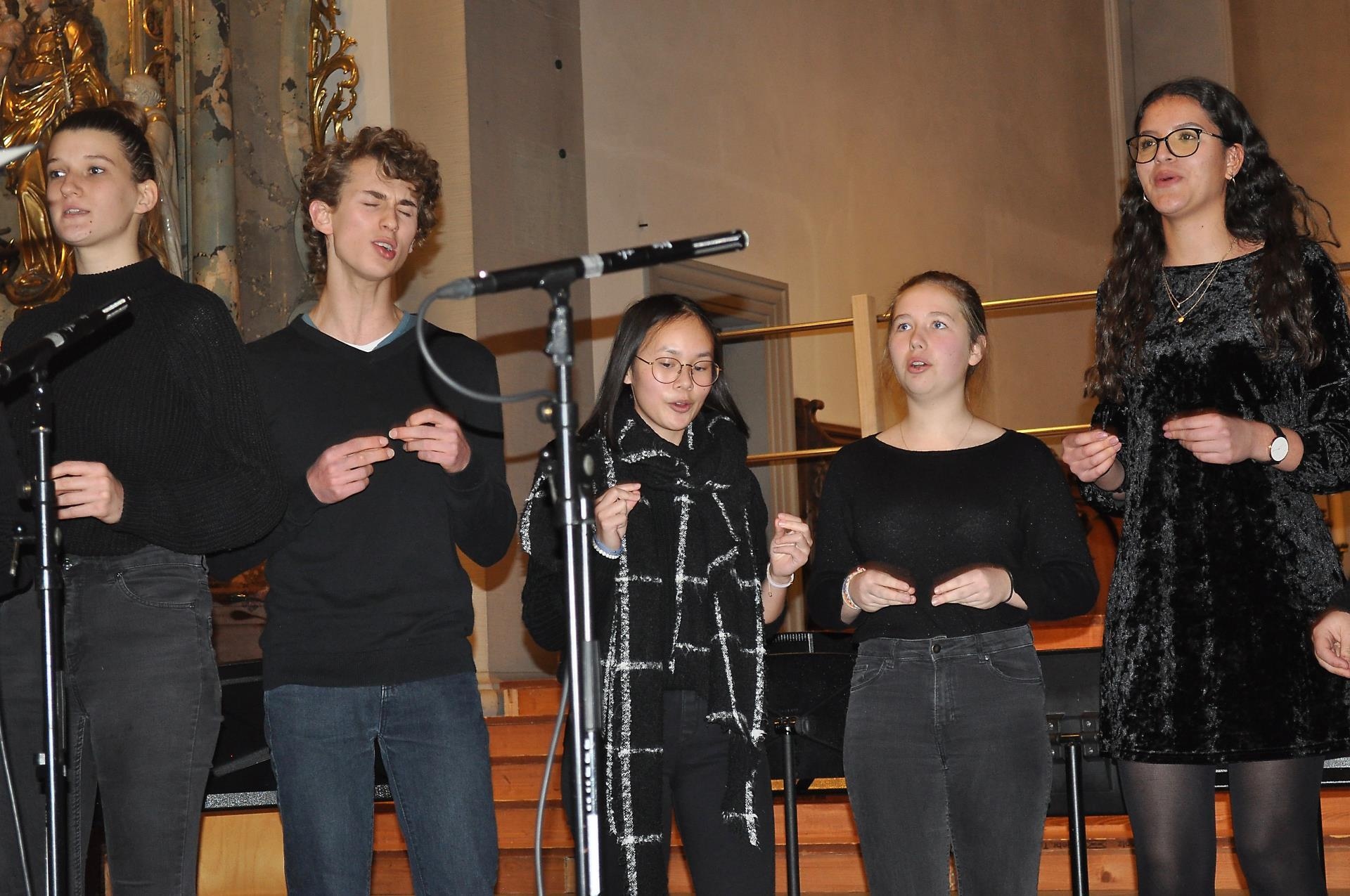 Die Kanti Big Band bewies, dass allzu enge Vorstellungen, wie denn Weihnachten zu klingen habe, aufgeweicht werden können: Richel Fajardo brillierte in ihrem Soloauftritt im Ray-Charles-Song «Hallelujah I Love Her So», die Big Band untermalte die darin enthaltenen Liebesbeteuerungen gefühlvoll. Zuvor schwelgte die Big Band in «Up On The Housetop» des zeitgenössischen US-Komponisten Paul Clark. Dessen Arrangement lässt Saxophonpassagen jazzig angehaucht hervortreten.