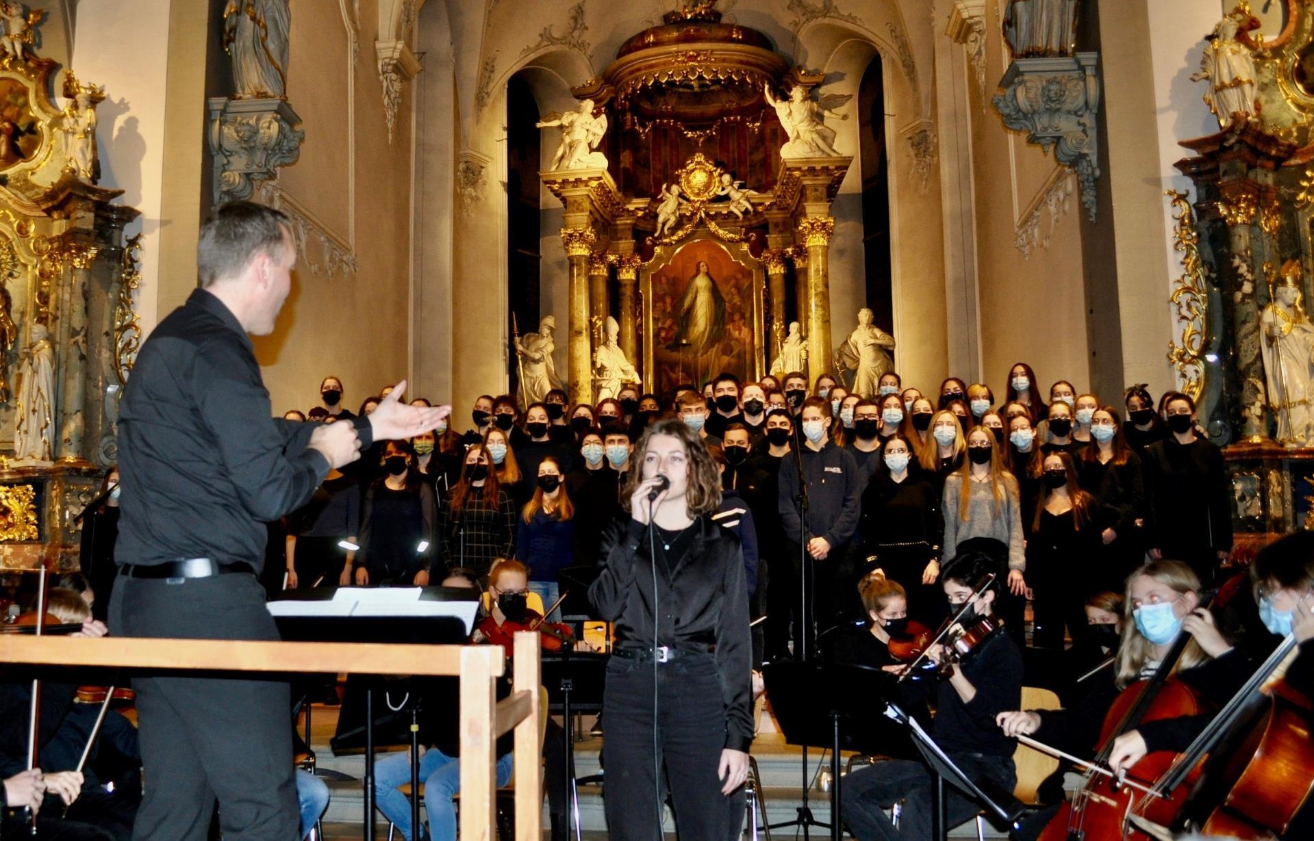 Der Kammerchor überraschte das Publikum als nächste Formation mit seiner Umsetzung von Wolfgang Amadeus Mozarts «Più non si trovano» aus der «Canzonette» KV 549, abgerundet und leichtfüssig dargeboten. Jazzartige Akkorde als Einsprengsel im ansonsten von traditionellen Harmonien geprägten Spiritual «I Can Tell The World» folgten. Den Aufforderungscharakter des Spirituals – freue dich an Weihnachten – setzten die a capella singenden jungen Sänger und Sängerinnen engagiert um. Erheiternd schliesslich das dritte Stück, «Jingle Bells» als absoluter Weihnachtsklassiker: Es ertönte - durchsetzt mit vom Chor spassig eingeworfenen Geräuschen – vermischt mit einem anderen Klassiker, «Süsser die Glocken nie klingen». Jingle Bells als Dauerbrenner unter den Weihnachtsliedern erhielt dadurch eine amüsante, ironisch-ungewohnte Note.