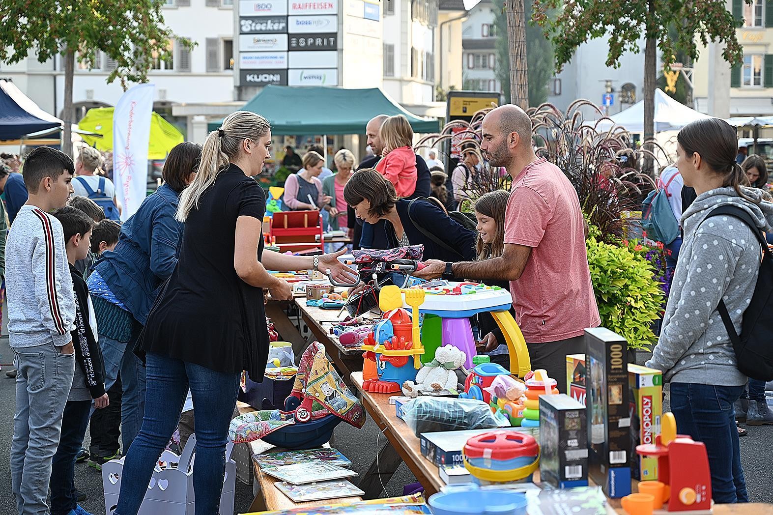 «Schau, Papa, dieses Kiki gefällt mir» oder «Ist das nicht die Puppe, die ich mir schon lange wünsche?» Solche und ähnliche Aussagen waren am Samstagvormittag auf dem Martigny-Platz immer wieder zu hören. Und dazu leuchteten die Kinderaugen, wenn für ein Fränkli oder etwas mehr auf dem Spielzeugflohmarkt ein neues Spielzeug ergattert werden konnte. Genau das ist die Idee des Spielzeugflohmarkts, der im Rahmen der Themenwoche «Heute für die Zukunft» vom Spatzentreff angeboten wurde. Der Markt bot Eltern und Kindern die Chance, gebrauchte Spielsachen weiterzuverkaufen oder zu kaufen. Einige der Mädchen und Knaben nutzen diese Gelegenheit, und es schien ihnen recht gut zu gelingen, denn zeitweise herrschte auf dem Martigny-Platz reges Markttreiben.