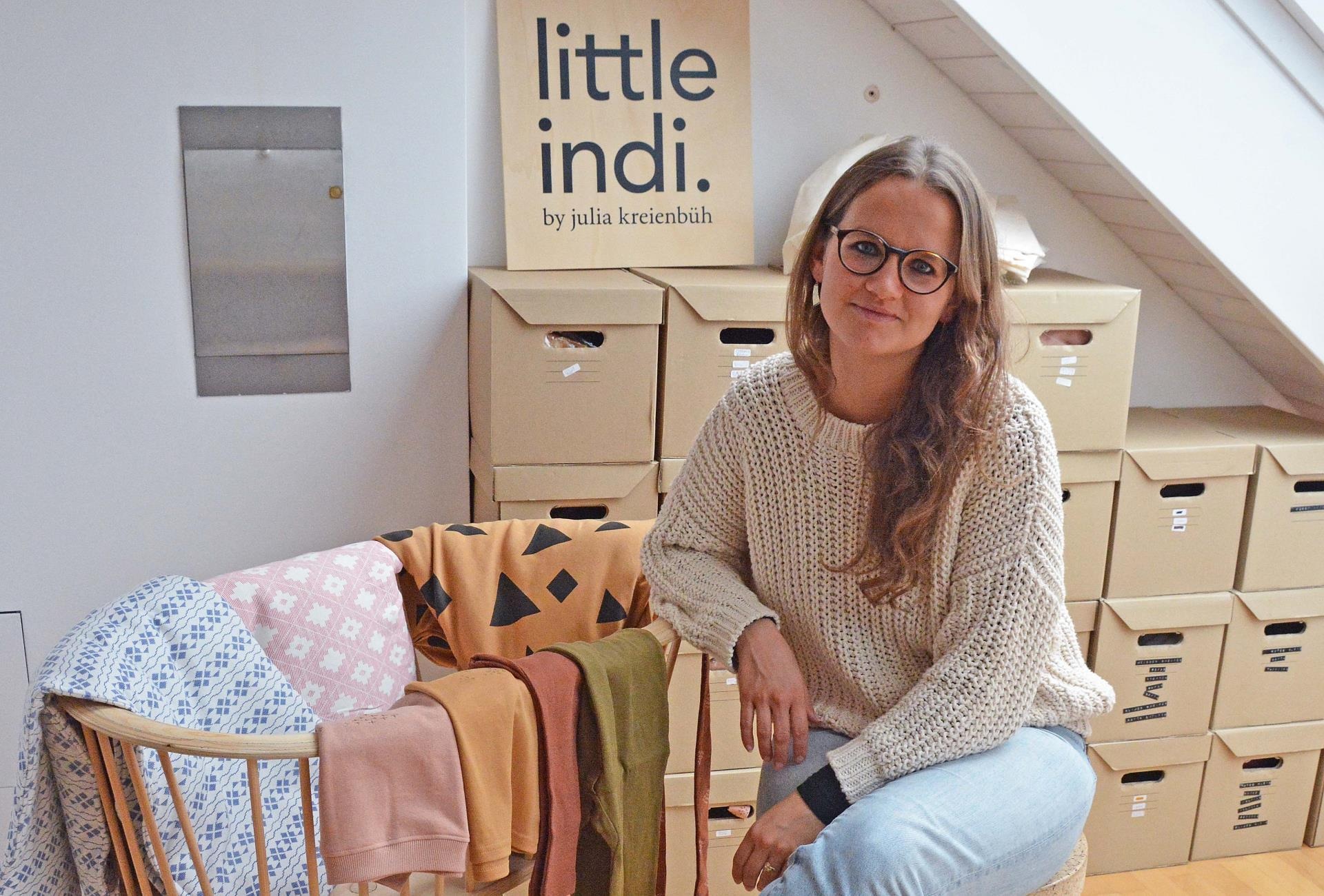 Die ersten Jahre nach dem Launch von «Little Indi» 2013 hat Julia Kreienbühl eigenständig genäht und ihre Kreationen vermarktet. Nebenbei hat sie bis heute eine Stelle in der Textilbranche inne. Angst, sich selbstständig zu machen, hatte sie nicht. «Ich hatte ein fes-tes Einkommen, anfangs keine grossen Investitionskosten und somit nichts zu verlieren», sagt sie. Die zuversichtliche Einstellung zahlte sich aus, die Modelinie stiess bei den Kunden auf Anklang. 2014 hat die Surseerin mit Geburt ihrer Tochter schliesslich selber gelernt, was es bedeutet, Mutter zu sein.