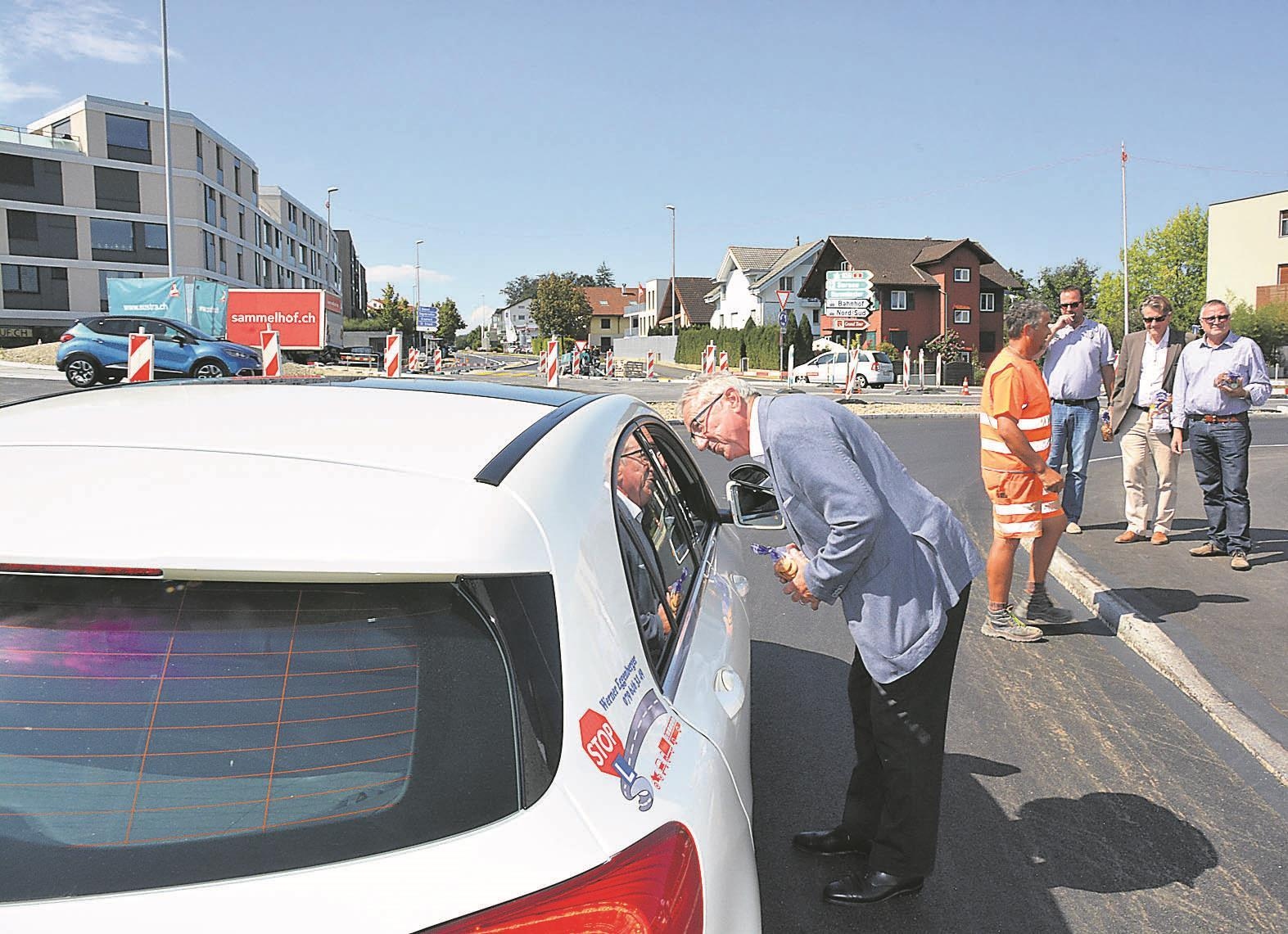 – Bei allen Ein- und Ausfahrten des Kreisels Kotten sind Fussgängerstreifen und 3 Meter breite Furten für den Radverkehr im Gegenverkehr erstellt worden. Zur Verbesserung der Sicherheit für den Langsamverkehr wurden Schutzinseln erstellt, damit nicht zwei Fahrspuren auf einmal überquert werden müssen. Sämtliche Rad- und Gehwege um den Kreisel weisen eine Breite von 3 Metern auf.