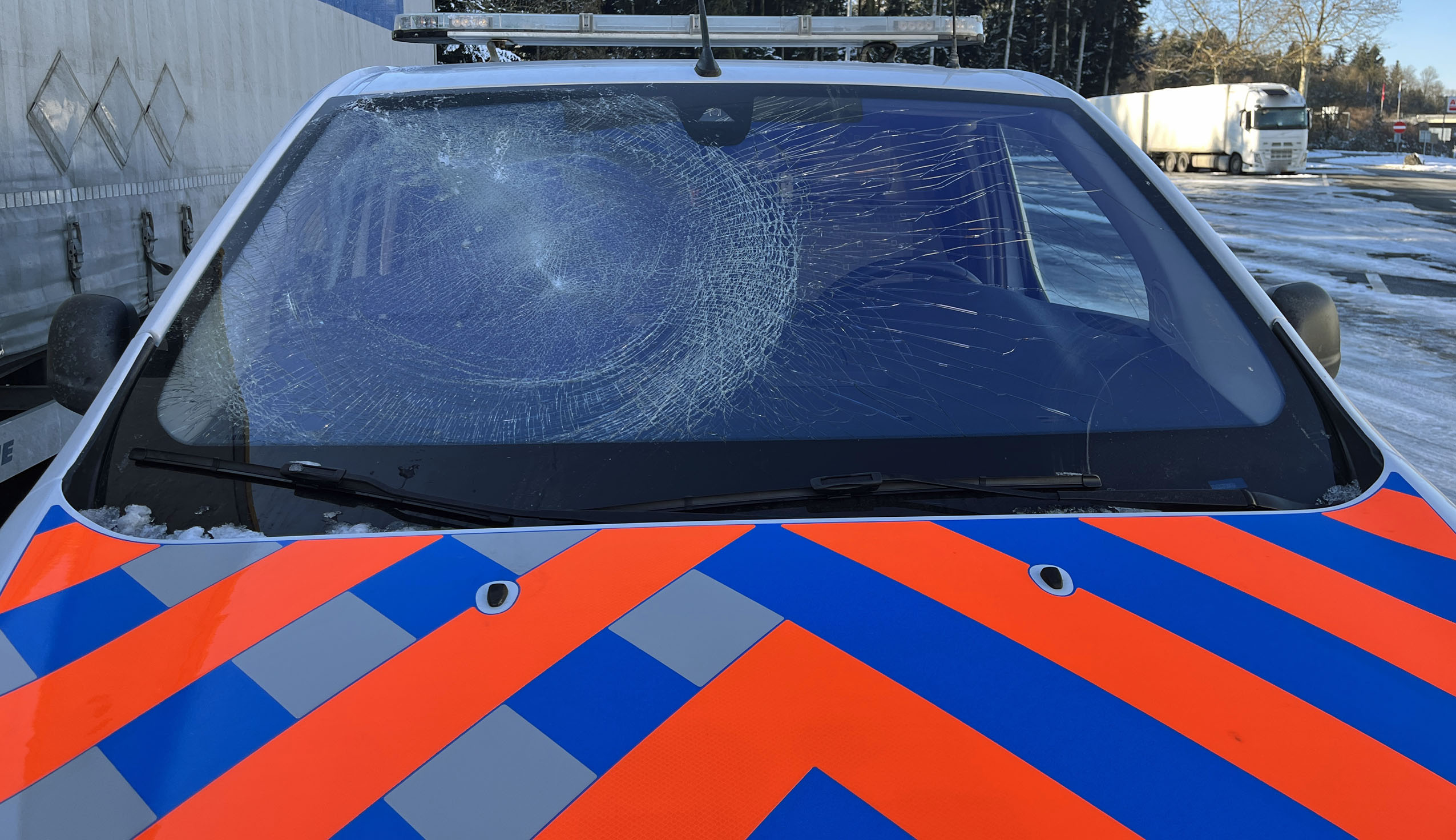 Auf der Autobahn A2 in Sursee wurde ein Lieferwagen von herunterfallenden vereisten Schneeplatten getroffen