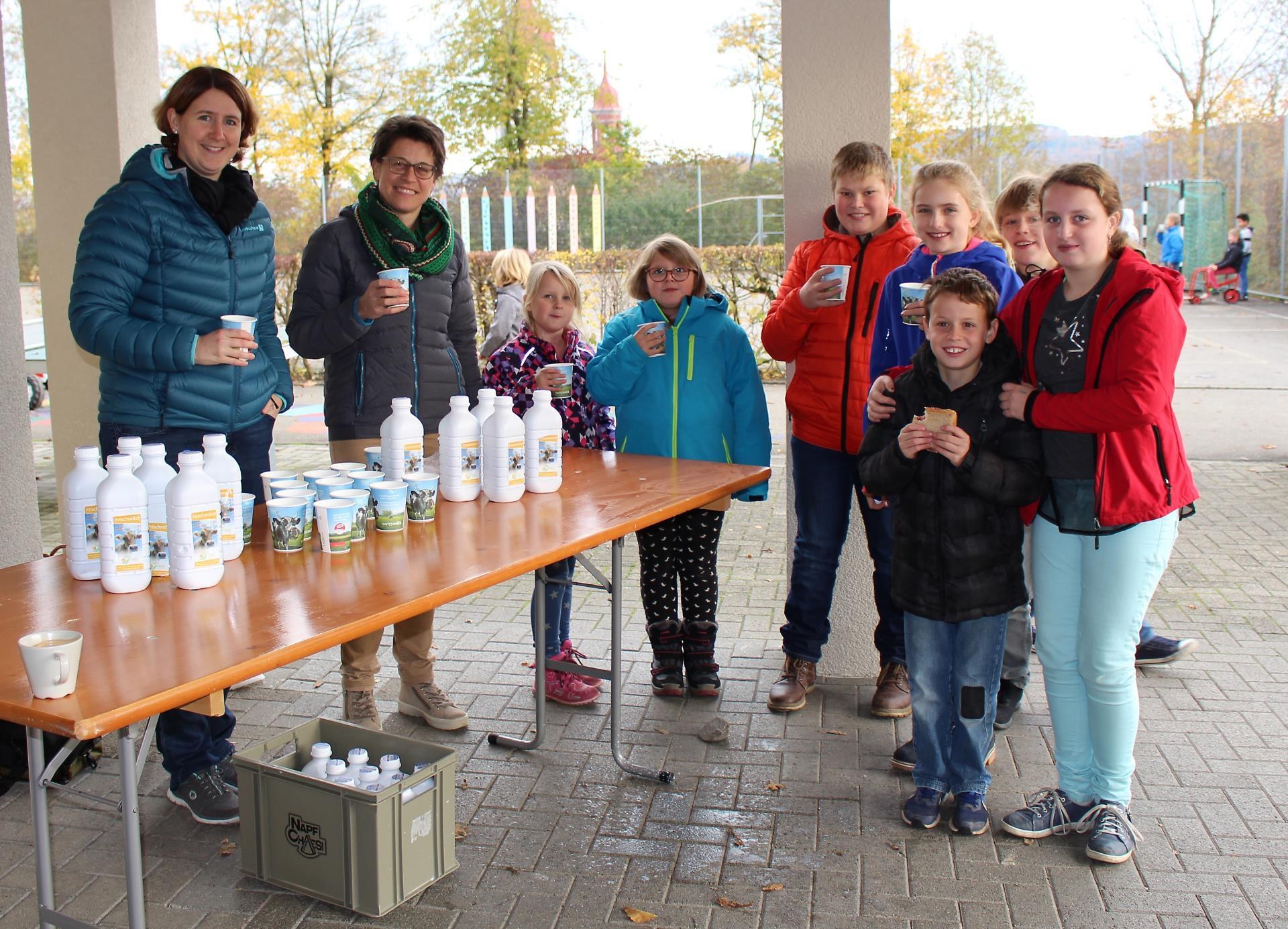Am Tag der Pausenmilch vom Donnerstag, 7. November, schenkte der Bäuerinnen- und Bauernverein Surental Milch den Schülern aus.