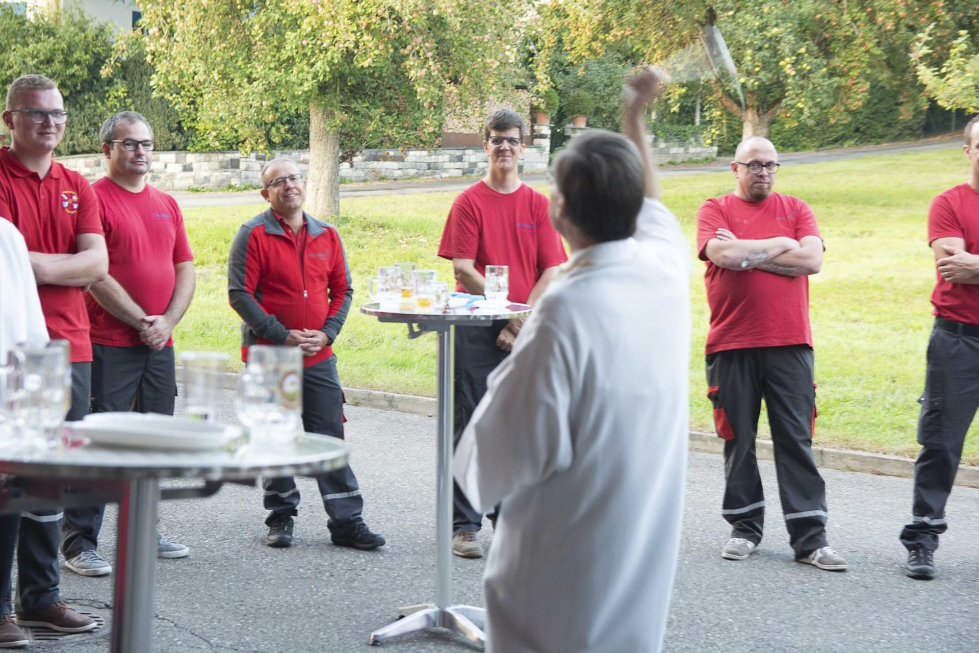 Bevor ein heisser Schinken mit Salat lockte, dankten die drei Fahrzeuglieferanten für den Auftrag. Zum Schluss grüsste der ehemalige Regiowehr-Kommandant vom TLF mit Blaulicht alle Anwesenden. Das war das passende Signal für den Beginn des gemütlichen Teils.