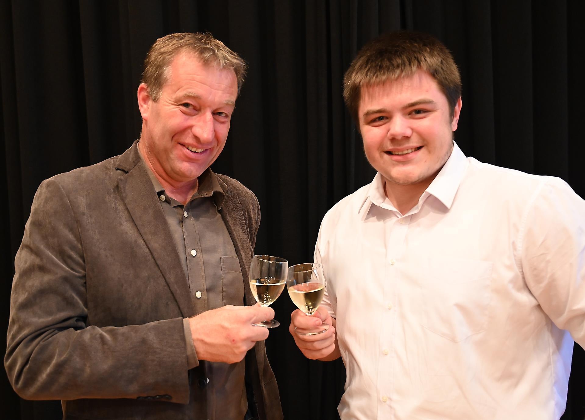 Ganz im Sinne der Aufforderung des Gemeindepräsidenten Jürg, sich auch in der Öffentlichkeit zu engagieren, stiess er beim Apéro mit Jungbürger und Präsident des Jugendparlament Surental, Remo Suter an. «Es wird eine Verschiebung von Sitzen geben und davon profitieren die Grünen und die Linken», meinte Jürg Schär zu den nationalen Wahlen. Wer diese Sitze einbüssen würden, wollte er nicht prognostizieren.