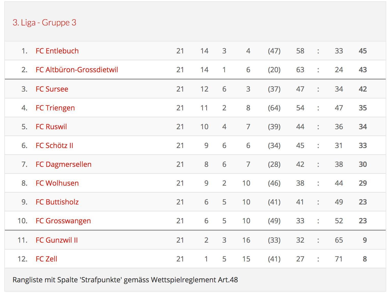 Sursee muss sein Heimspiel gegen Dagmersellen gewinnen und hoffen, dass entweder Entlebuch (auswärts gegen Schötz) oder Altbüron maximal einen Punkt in Triengen holt. Entlebuch reicht somit ein Unentschieden und Altbüron ein Sieg.