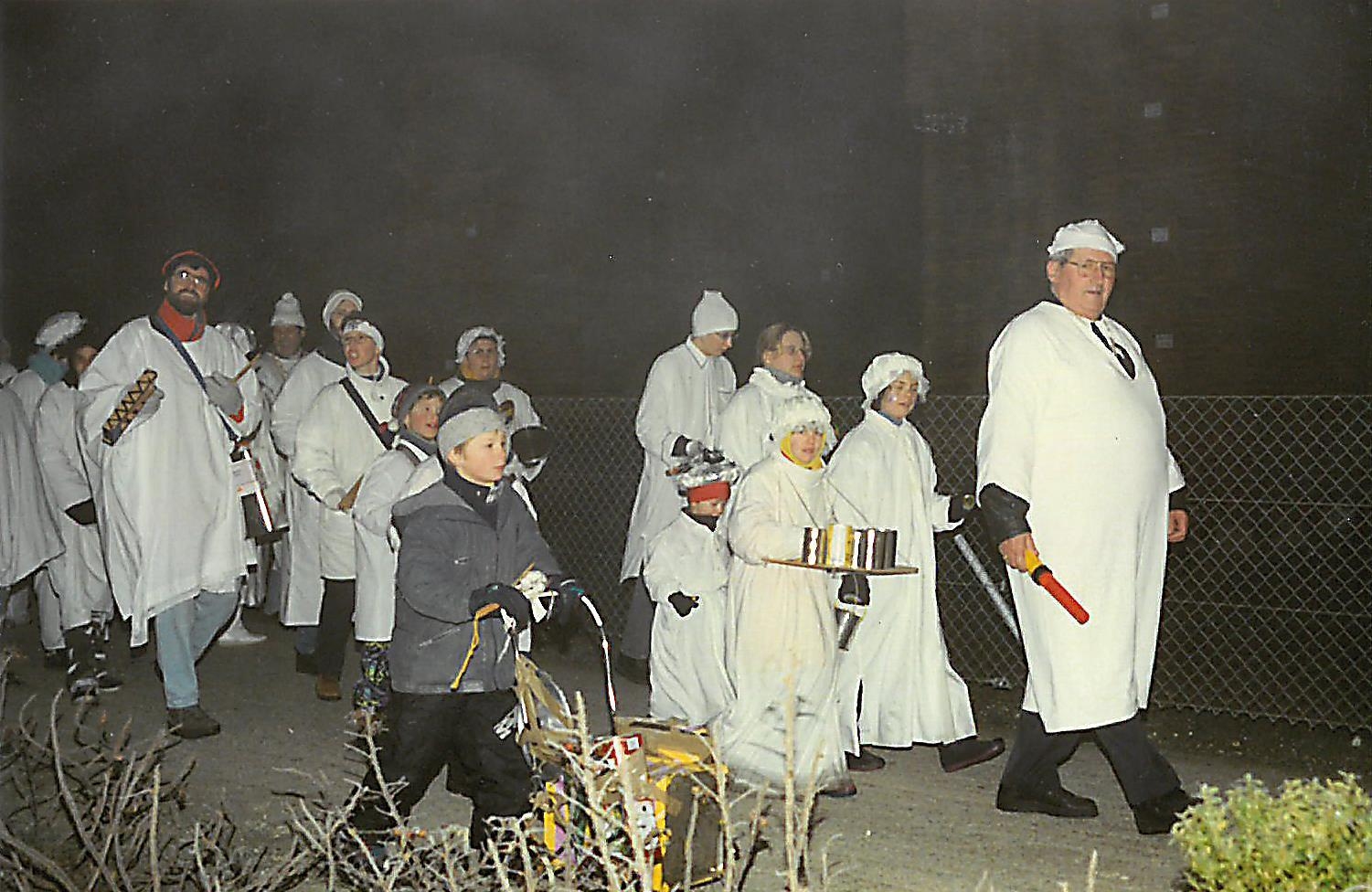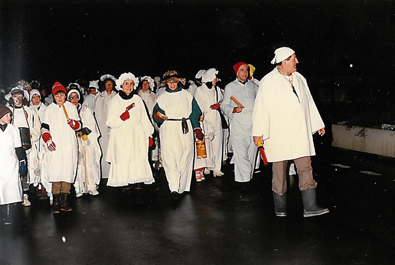 Nach der Inthronisation trafen sich die Zünftler und Verwandte bei Hans Lerch an der Bahnhofstrasse zur traditionellen Mehlsuppe. «Meine Schwiegermutter kochte sie.» Weil die Wohnung für alle zu wenig Platz bot, assen einige die Mehlsuppe im Treppenhaus. «Nach der Suppe gingen wir noch bis am Morgen um 9 Uhr zu Hans Kottmann.»