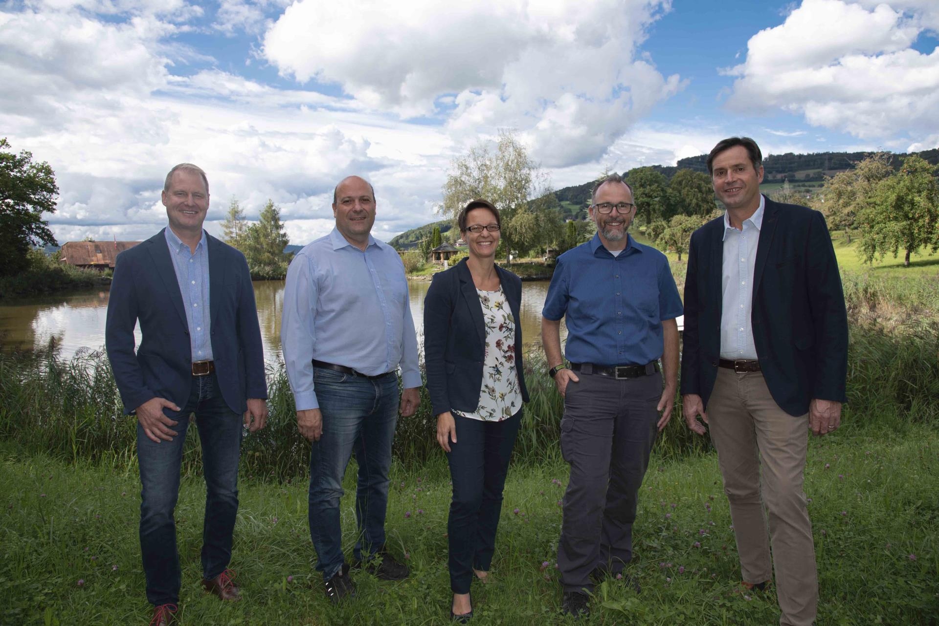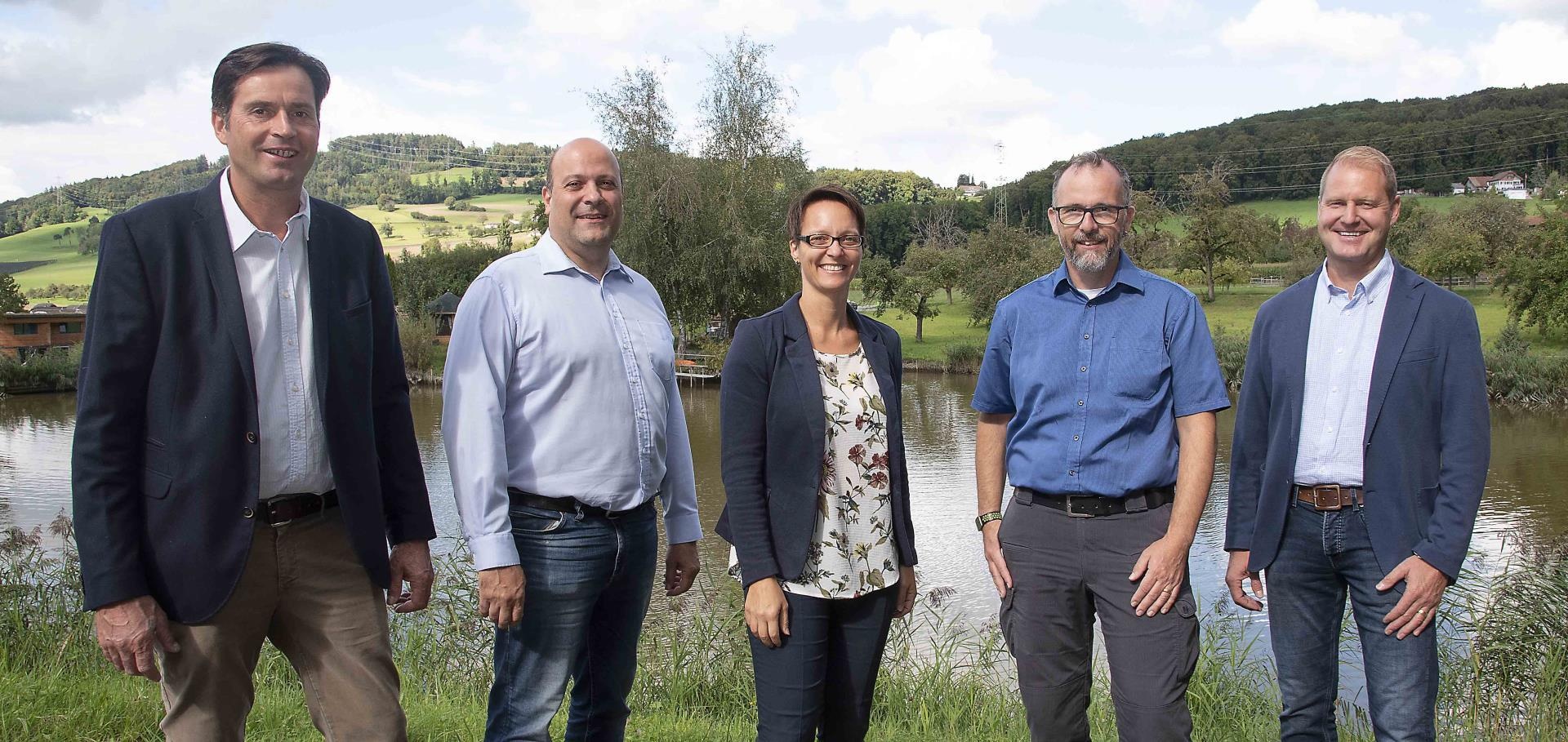 Vor der Sitzung traf sich der Gemeinderat noch zum Fototermin beim Weiher in Büron, wo eine lockere Stimmung herrschte.