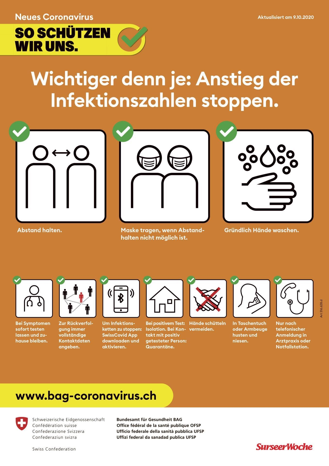 Die Bevölkerung habe es in der Hand, mit einfachen Verhaltensregeln die Infektionskurve abzuflachen, Engpässe im Gesundheitswesen und weitere Verschärfungen mit gravierenden wirtschaftlichen und gesellschaftlichen Folgen zu verhindern, sagte Regierungspräsident Reto Wyss: «Mehr denn je ist jetzt Selbstverantwortung gefragt.»