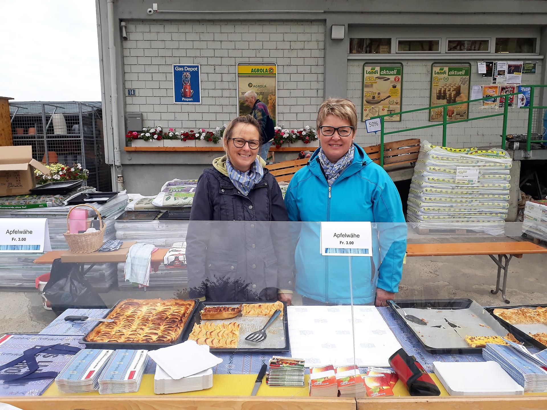 Die Bäuerinnen zeigten die Vielfalt des Schweizer Apfels mit den Wähen, Süssmost, getrockneten Apfelringen, Apfel-Gelee, Apfelmus oder frischen Äpfeln auf. 365 Ofenbleche Apfelwähen und alle verschieden - geraffelt, geschnitzelt, meringuiert, verziert mit Puderzucker, verfeinert mit Zimt oder sogar mit Dinkelmehlteig. Die Kundschaft schätze diese Vielfalt sehr.