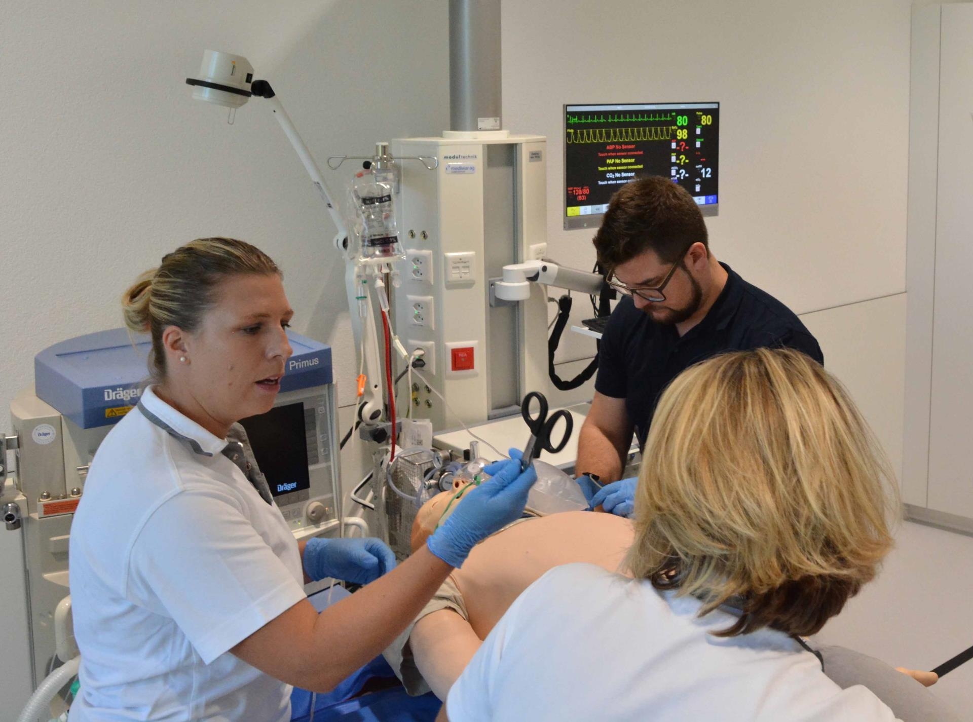 Helge Regener erklärte am Dienstag: «Wir können realitätsnahe Situationen simulieren.» Dabei müsse nicht ausgereizt werden, was möglich sei, sondern simuliert werden, was sinnvoll sei. 10 bis 15 Minuten dauert ein Szenario. Dann kommt die Analyse. Die hier arbeitenden Rettungssanitäter würden 30 Sekunden brauchen, um sich an die simulierte Situation zu gewöhnen. «Dann sind sie drin.» Drin heisst, dass sie wie bei Ernstfällen handeln. «Hier dürfen sie aber auch noch Fehler machen.» Drei Kameras filmen und Raummikrofone nehmen die Übungen an Puppen auf, so dass die Aus- oder Weiterzubildenden später genau sehen und hören, wie sie in welcher Situation reagiert haben. Hinter einer Glasscheibe kann eine zweite Gruppe zuschauen und der ersten Gruppe später ein Feedback geben.