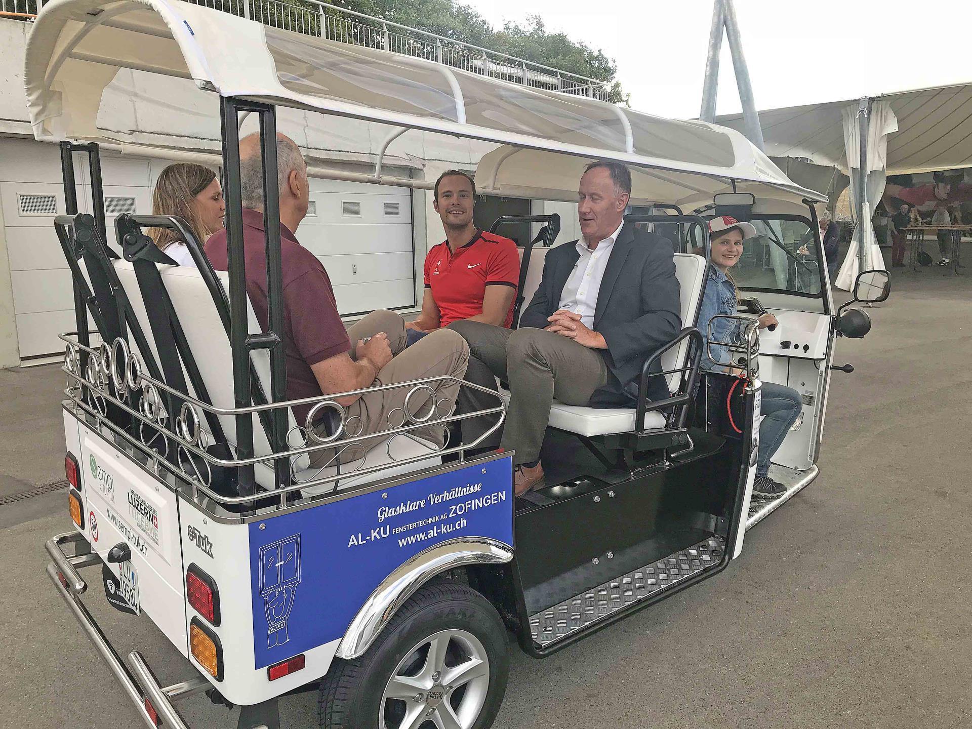 Jetzt sind die zwei Sempi Tuk-Tuks da. Vom Standort Wassergrabe in Sursee aus, kutschieren sie Gäste rund um den Sempachersee. Vier Plätze stehen bereit. Am Donnerstag konnte Marcel Hug, mehrfach ausgezeichneter und erfolgreicher Nottwiler Rollstuhl-Leichtathlet, eine kurze Kostprobe auf der Leichtathletikanlage beim Schweizer Paraplegiker-Zentrum machen. Angetrieben werden die Tuk-Tuk mit Strom.