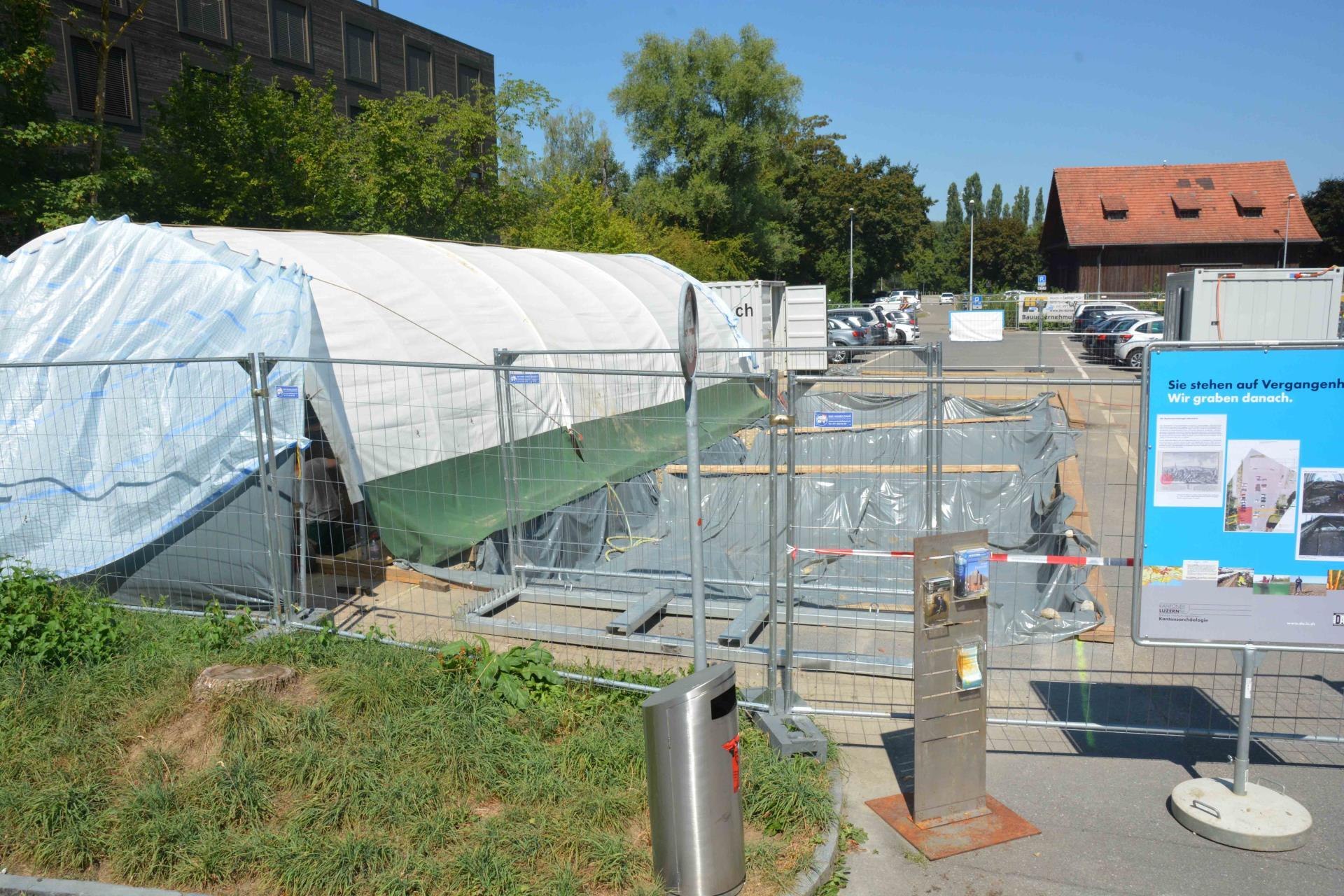 Auf Anfrage erklärt Grabungsleiter Hermann Fetz: «Die äussere Stadtmauer zeigt sich tatsächlich schön.» Die Erwartungen hätten sich bestätigt. Handfeste Ergebnisse seien seit Grabungsbeginn Anfang Juli jedoch noch keine gewonnen worden. Vom zweiten Grabungszelt, das schon erkennbar ist, erwartet er noch mehr Befunde. Im September, sagt Hermann Fetz, könne er mehr Informationen liefern.