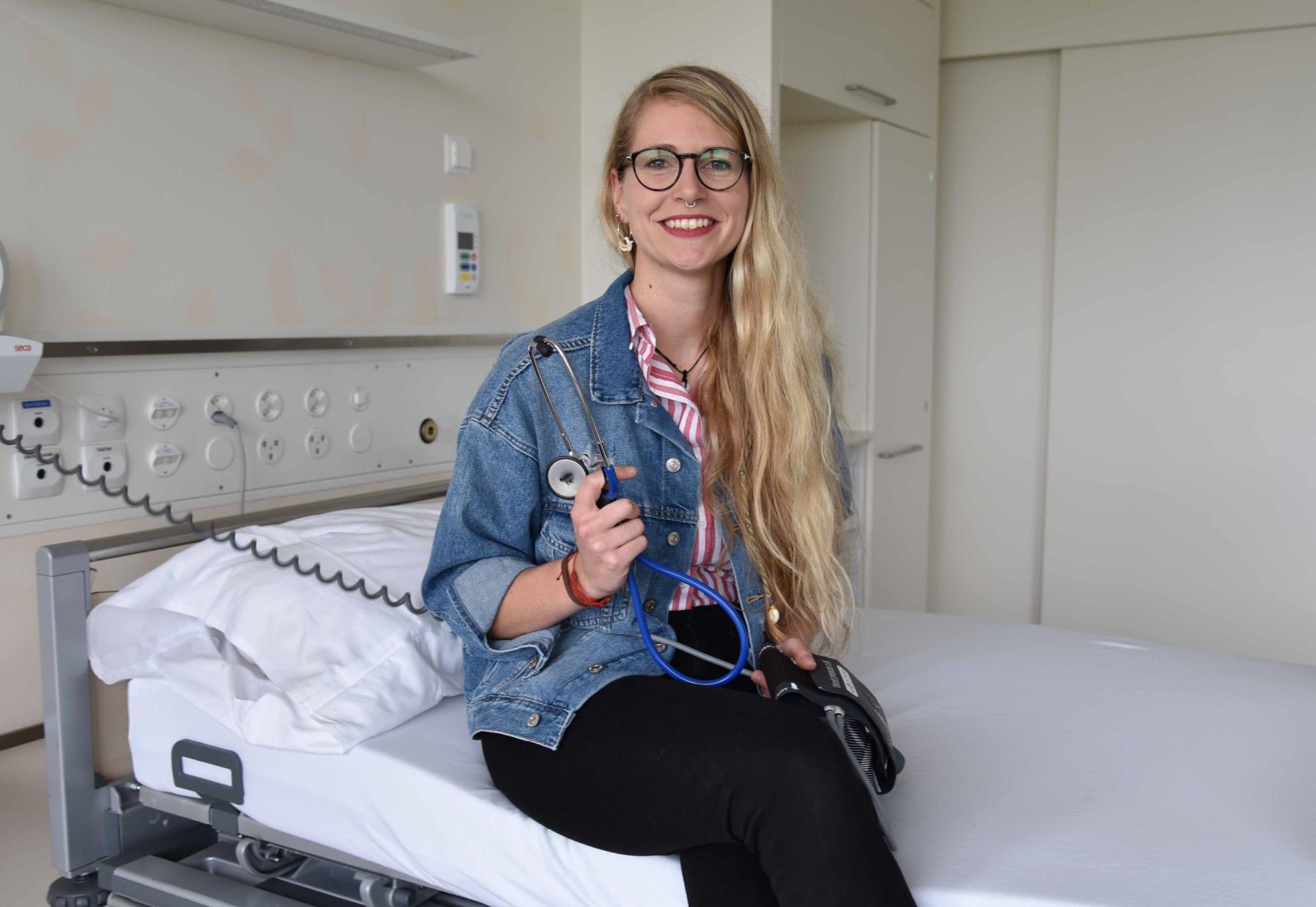 Frisch geduscht und die Ärmel ihrer Jeansjacke nach hinten gekrempelt wartet Sara Muff im Eingangsbereich des Schweizer Paraplegiker-Zentrums SPZ Nottwil. Gerade schloss die 26-jährige Pflegefachfrau HF den siebten Nachtdienst hintereinander ab. Diese dauern jeweils von 21.30 bis kurz vor 7 Uhr.