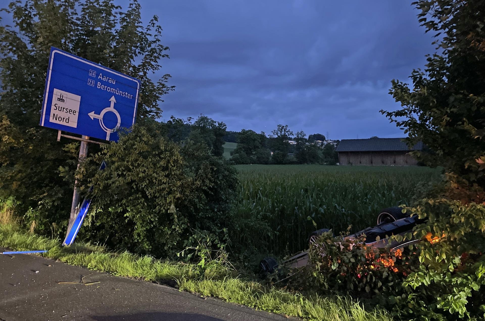 Bei einem Selbstunfall auf der Surentalstrasse in Schenkon landete ein Auto auf dem Dach. Es entstand Sachschaden in der Höhe von rund 50'000 Franken.