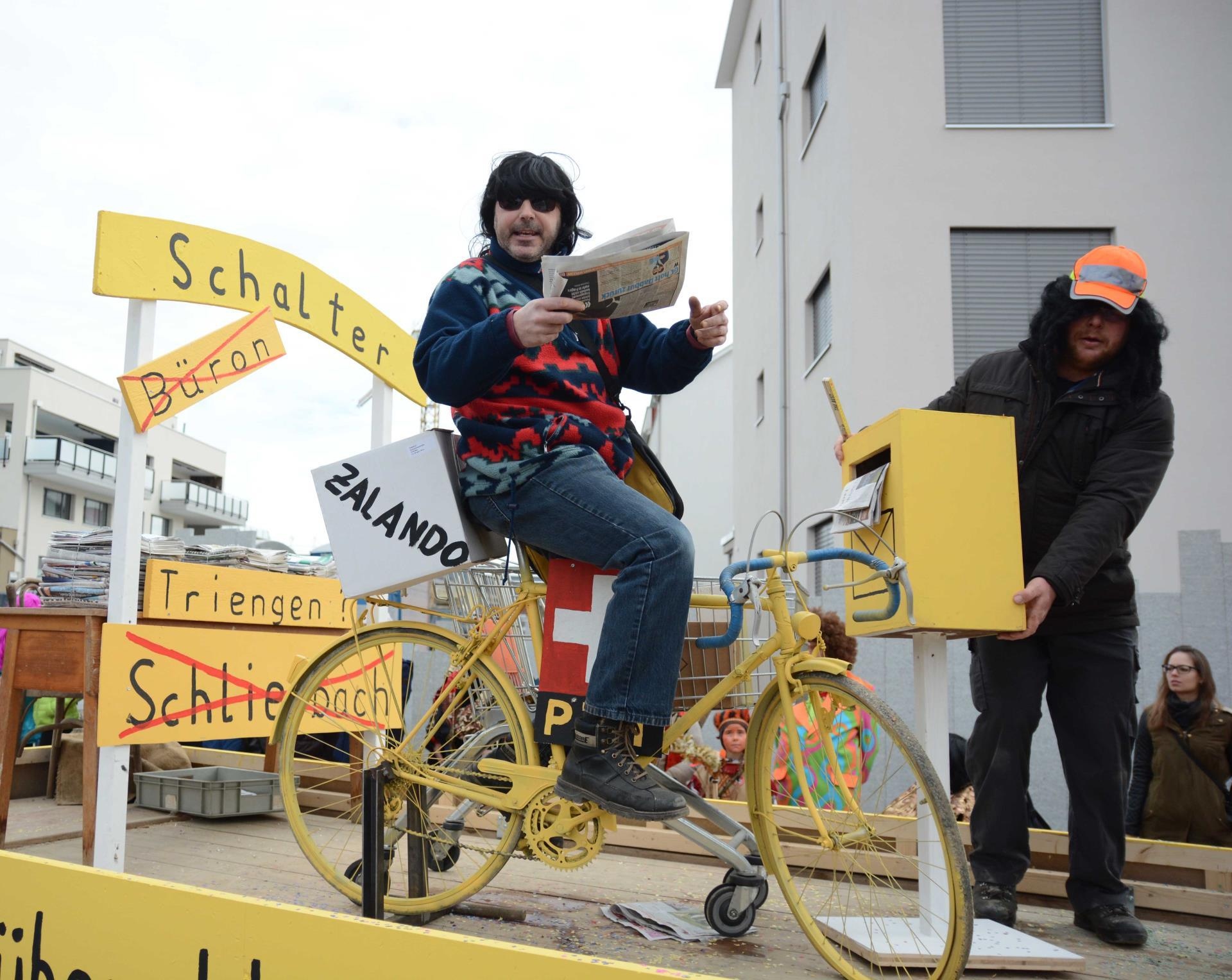 Besonders viele Schaulustige haben sich am Sonntag den Schlierbacher Fasnachtsumzug zu Gemüte geführt. Eine gehörige Portion Lokalkolorit durfte dabei nicht fehlen, so etwa der geplatzte Windpark im Surental oder die Schliessung der Poststellen auf dem Land. (ma)
