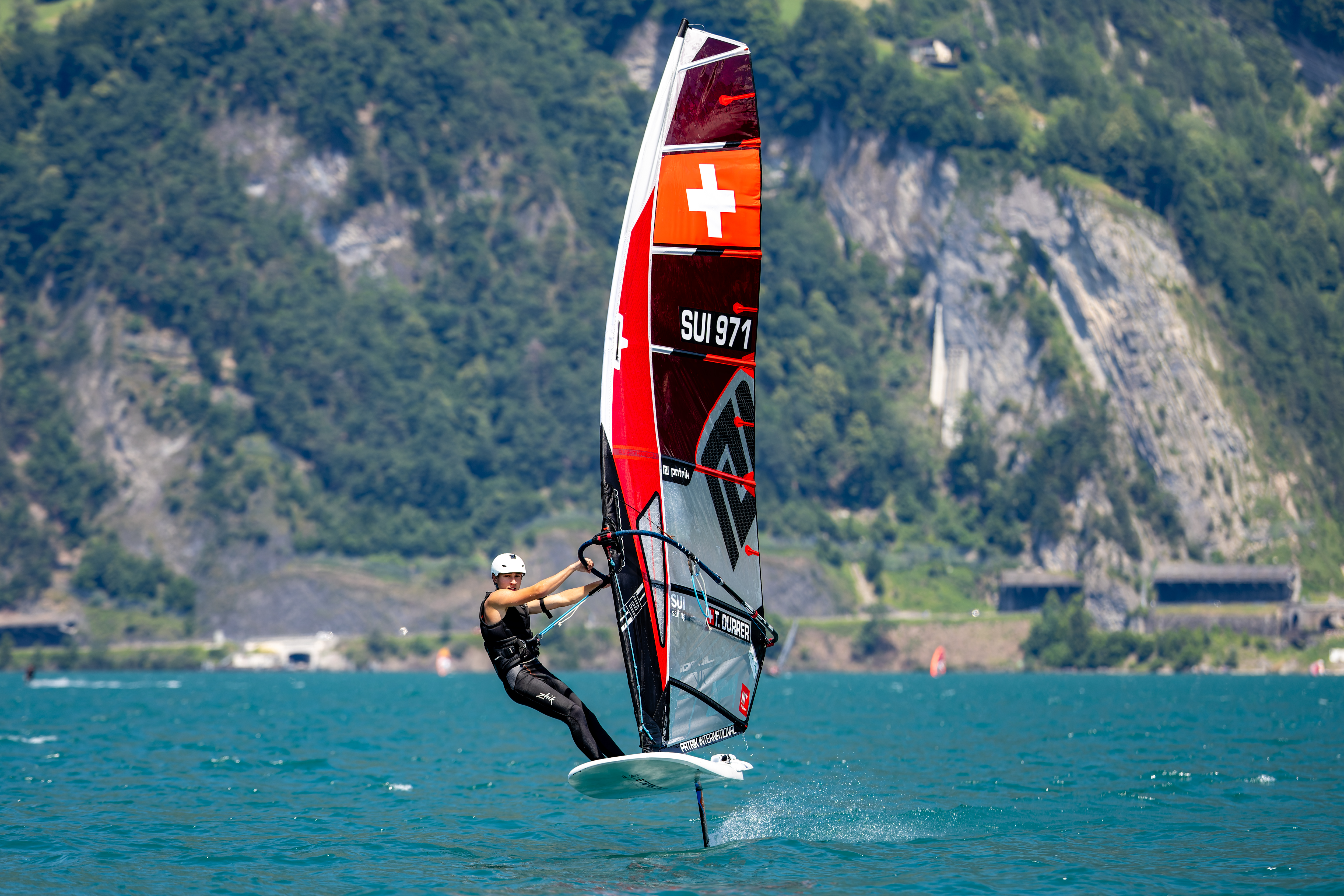 Zuerst muss man sich mal die Technik erarbeiten, was sehr anspruchsvoll ist und immer Verbesserungspotenzial hat. Danach kommen noch die Manöver (Wende und Halse) dazu. Die Wende ist insbesondere herausfordernd, da man vorn am Segel vorbeimuss und nicht einfach wie bei der Halse das Segel vor sich drehen kann. Und zuallerletzt ist der Wettkampf selbst natürlich die grösste Herausforderung. Es gilt, den Wind immer zu beobachten und die Strategie entsprechend anzupassen. Zudem gibt es noch Vortrittsregeln, die zu beachten sind. Und man muss sich auch an der Konkurrenz, die denselben Kurs zur gleichen Zeit fährt, orientieren.
