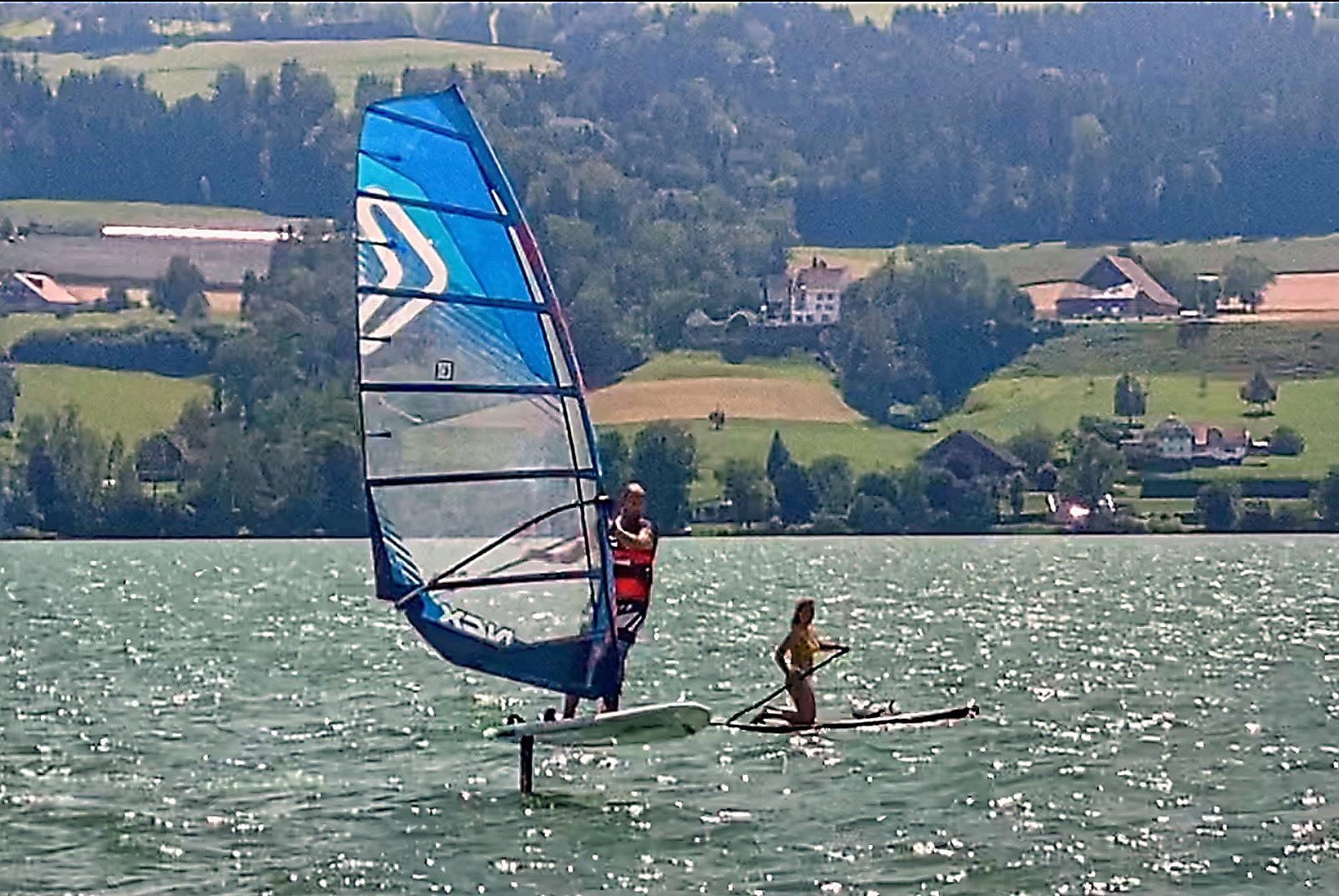 Dank der geringen benötigten Windstärke kehrte Christian Berner, der eine lange Erfahrung mit dem Windsurfen hat, nach mehreren Jahren Pause diesen Sommer wieder mit einem Brett zurück auf den Sempachersee. Die Leute auf dem See staunten, wie er über das Wasser flog. «Wow, er fliegt», hörte er immer wieder.