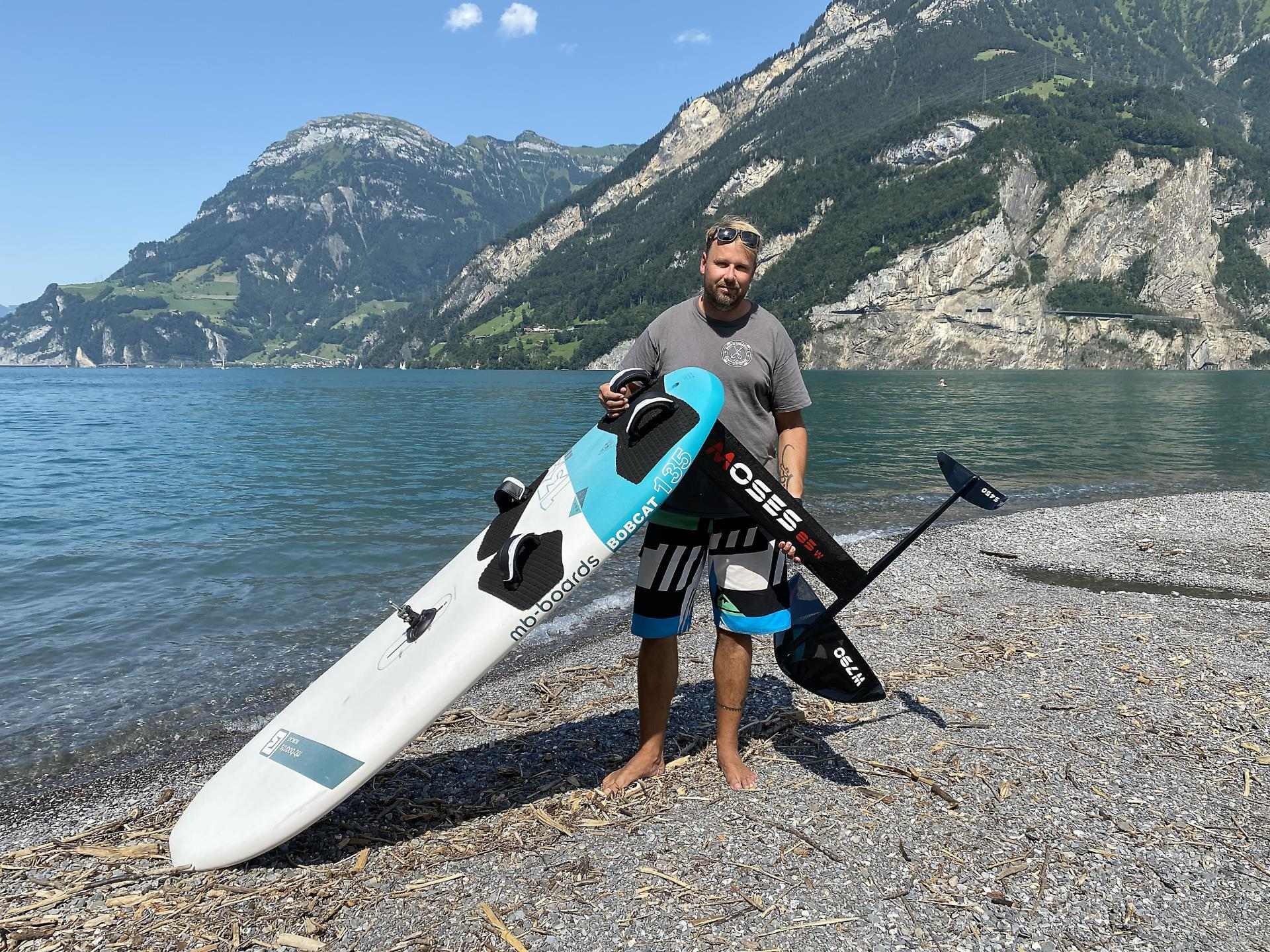 Vor zwei Jahren entdeckte Christian Berner diese neue Sportart in Griechenland. Im Juni probierte er das Windfoilen erstmals im Urnersee aus. «Ich konnte schon fliegen, aber es war komisch instabil.» Viel Geschick beim Balancieren sei gefragt. Man müsse versuchen, im Lot zu bleiben.