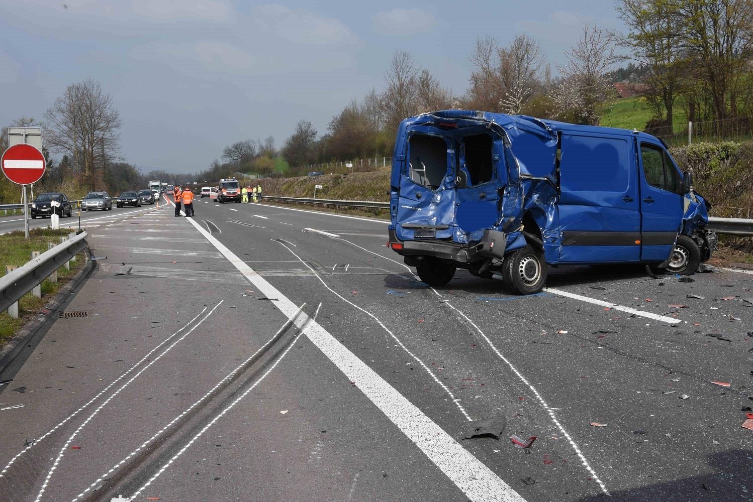 Im Bereich der vorübergehend einstreifigen Verkehrsführung kam es zur Auffahrkollision. Beteiligt waren ein Sattelmotorfahrzeug, ein Lieferwagen sowie zwei Personenwagen. In den unfallbeteiligten Fahrzeugen wurden sieben Personen verletzt, davon eine Person erheblich und zwei Personen leicht. Die übrigen Personen wurden vom Rettungsdienst zur Kontrolle ebenfalls ins Spital gebracht.