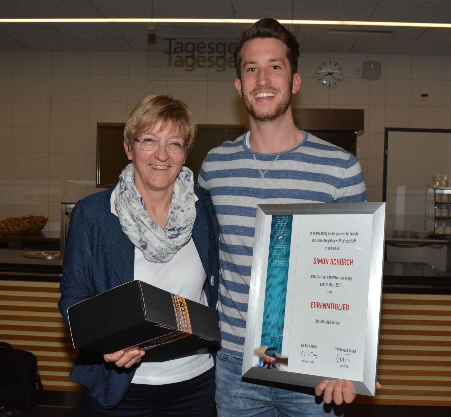 An der 100. ordentlichen GV des Seeclubs Sursee ernannten die Mitglieder Simon Schürch zum neuen Ehrenmitglied. Präsidentin Annemarie Lüthy konnte dem Olympiasieger die Auszeichnung überreichen. Der Ruderer aus Schenkon zeigte sich im Restaurant Cayenne in Sursee gerührt über die Ehre.