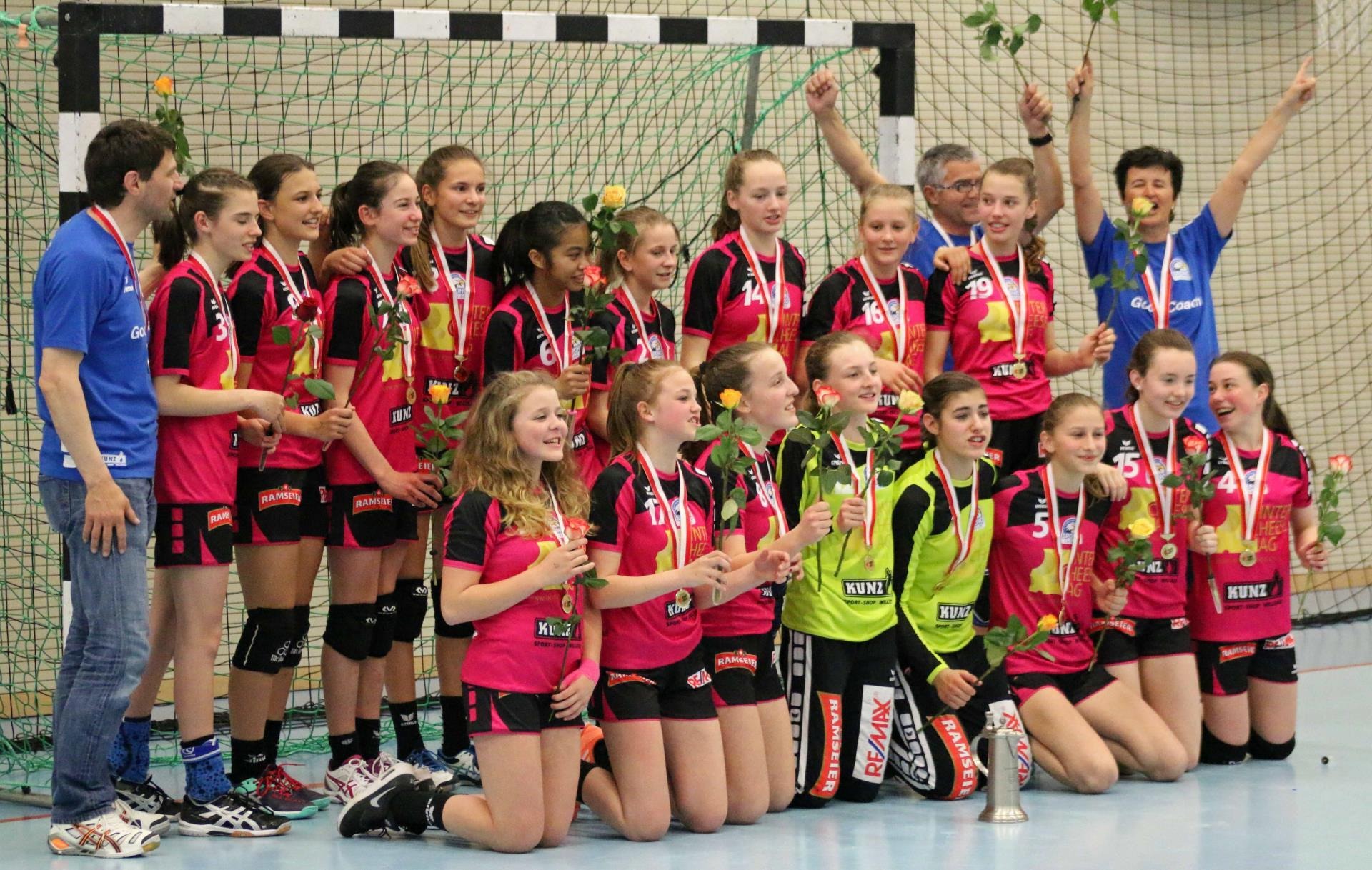 Die FU15-Elite-Juniorinnen der Spono Eagles holten sich zuhause verdient den Schweizermeistertitel im Hallenhandball. Nachdem sie schon die Finalrunde dominiert hatten, schlugen sie auch im Playoff-Hinspiel den HV Herzogenbuchsee klar mit 14 Toren Unterschied und sicherten sich nun mit einem 27:25-Heimsieg im Rückspiel souverän Gold.