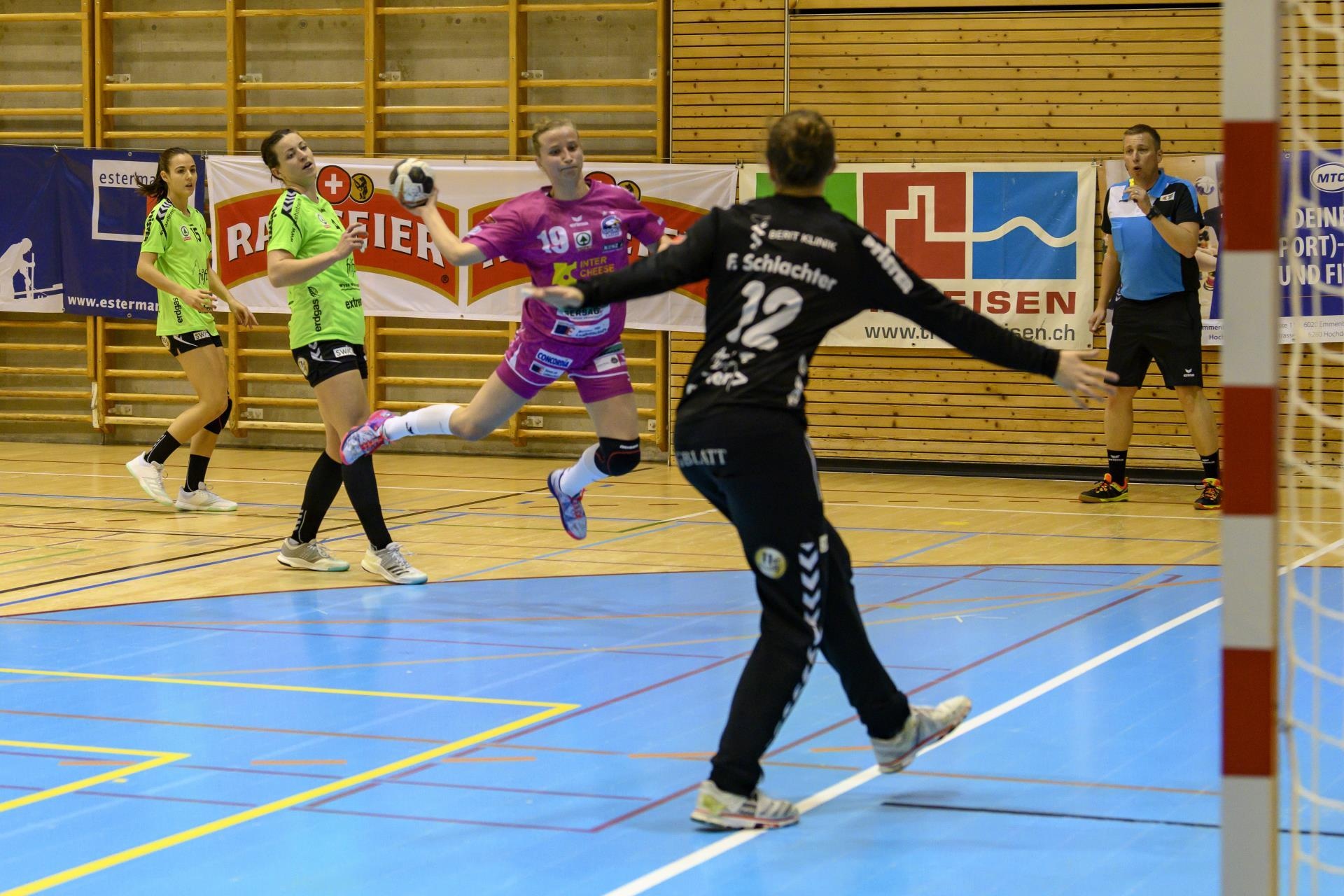 Zum zweiten Mal innert zwei Wochen spielten die Spono Eagles am Sonntag zu Hause gegen den LC Brühl. Doch diesmal handelte es sich um den letzten Heimmatch gegen den Titelanwärter der Saison. Das Spiel startete schnell und ausgeglichen. Die Adler vom Sempachersee konnten sich gut im Spiel zurechtfinden und gewannen Sicherheit und Selbstbewusstsein. Bald lagen die Gastgeberinnen mit zwei Toren vor (13./7:5). Ein Vorsprung, den sie zumindest bis zur Pause halten konnten. Zwar trafen einige Schüsse das Aus oder die Latte, doch die Verteidigung stand kompakt genug, um solche Patzer zu kompensieren. Auch auf die beiden Torhüterinnen Lea Schüpbach und Laila Troxler war zu zählen. So schafften es die Spono Eagles zu einem Zwischenresultat von 12:9 gegen das zweitplatzierte Brühl.