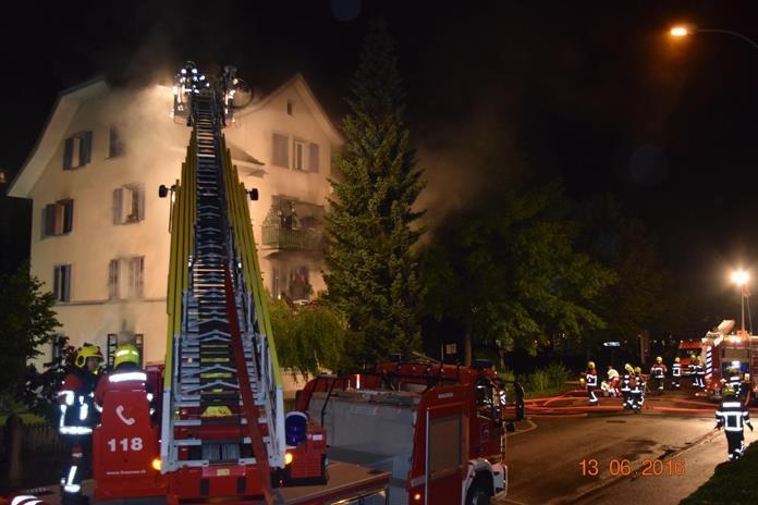 In der Nacht vom Montag auf den Dienstag, 13. Juni, 22.40 Uhr, wurde der Feuermeldestelle ein Brand in einem Mehrfamilienhaus an der Centralstrasse in Sursee gemeldet. Die ersten Einsatzkräfte entdeckten ein offenes Feuer und eine starke Rauchentwicklung im unteren Bereich des vierstöckigen Wohnhauses.
