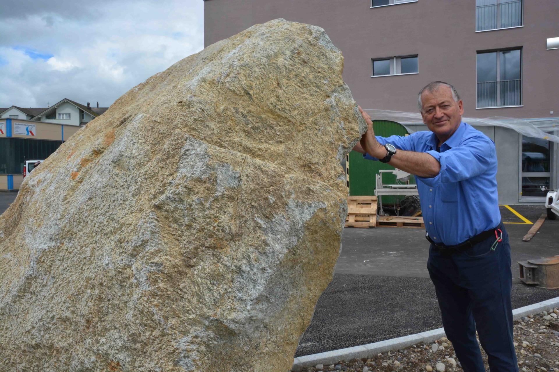 Während die Welt über die Schweizer Tunnelbauer am Gotthard staunt, kann auch Sursee feiern. Alt Stadtrat Gotthard Kaufmann (im Bild) mag seinen Findling, der vom Reussgletscher vor Millionen Jahren vom Gotthaauf sein Gelände transportiert wurde. Und Stefanie Schlüter aus Sursee hat massgeblich an Anlässen rund um den Tunnelbau mitgearbeitet.