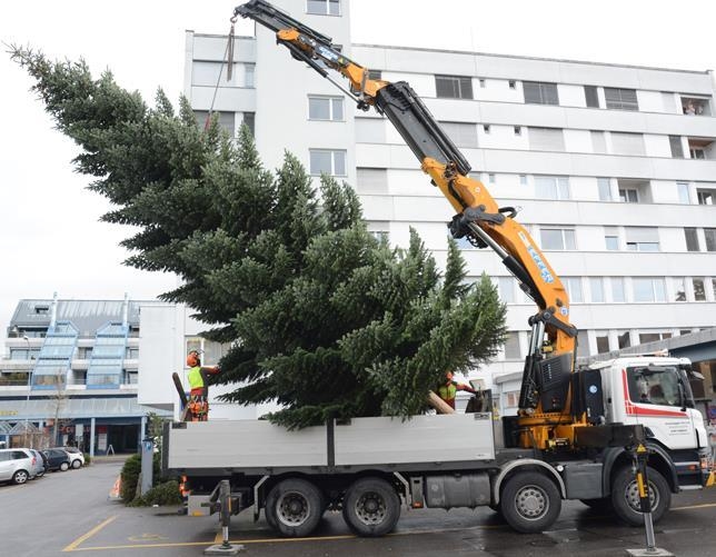 Am Donnerstag fällte der Forstdienst der Korporation Sursee die stattliche Nordmannstanne hinter dem Denner – mit dem Segen der neuen Eigentümerin des Grundstücks, der Lukb, die dort die Überbauung «Dreiklang» mit zwei Hochhäusern realisieren will. Die Tanne wurde anschliessend vor das Rathaus transportiert und dort als Christbaum aufgestellt.